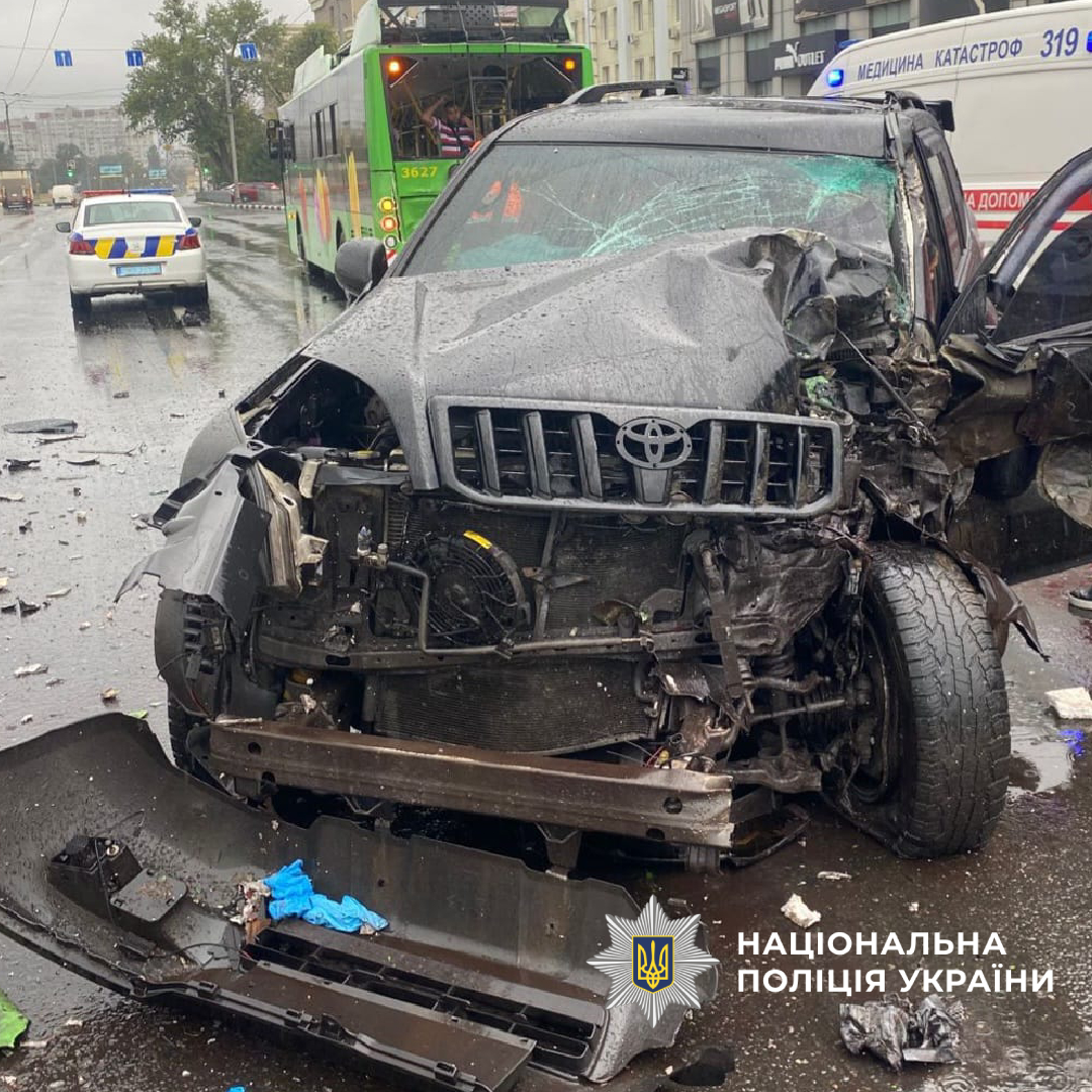23 серпня на проспекті Героїв Харкова сталося зіткнення автомобіля Toyota, тролейбуса та автобуса.