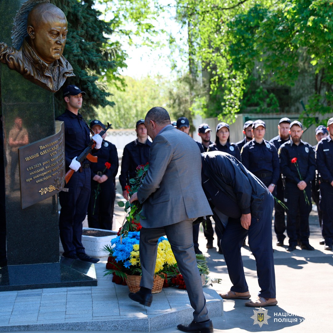 «Я впевнений, що для відділу поліції 4 квітня 2024 року — це найстрашніший день, адже тоді відбувся обстріл і один з безпілотників смертельно поранив вашого колегу і наставника Олександра Олександровича Іванова. Я знаю, що на сьогоднішній день його донька гідно наслідує свого батька. Але вона втратила батька завдяки тому, що підступний ворог б’є по тих місцях, де скупчення людей, де немає військових об’єктів. Відкриття цього меморіалу — нагадування для всіх, що серед нас були і, я впевнений, що будуть поліцейські, гідні свого звання».