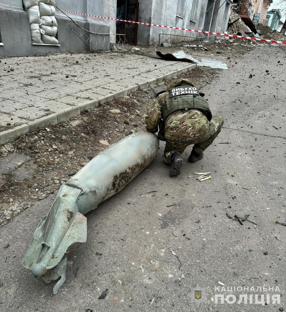 Дві авіабомби ФАБ-250 та ФАБ-500, скинуті з російських літаків, не вибухнули. Одна з них впала у житловому районі Куп’янська у дворі багатоповерхівок. Інша керована авіабомба впала на присадибній ділянці за житловими будинками у Куп’янському районі.