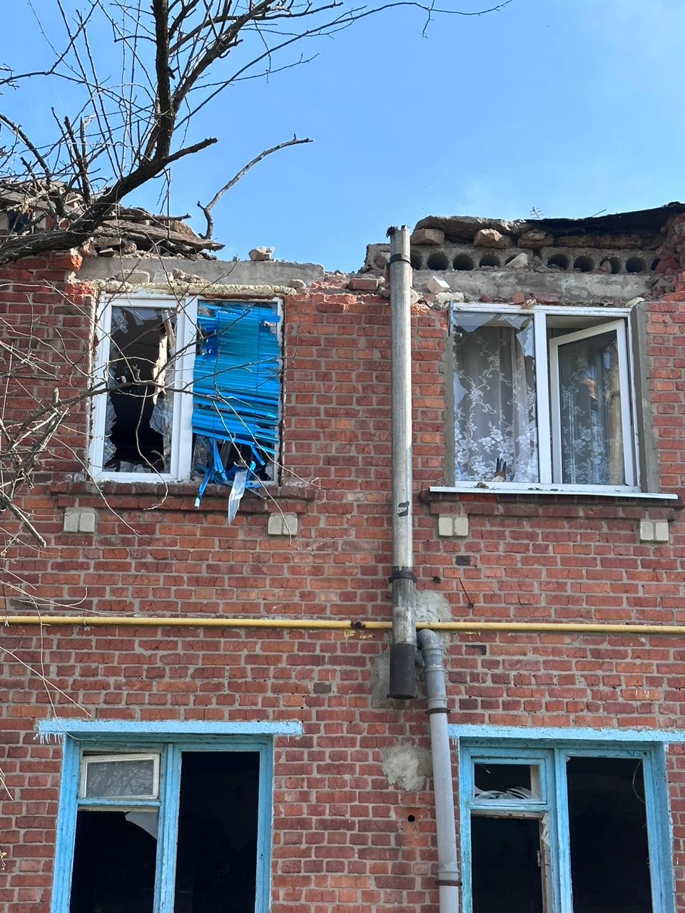 В результаті ворожої атаки відбулось влучання снаряда у двоповерховий будинок. Пошкоджені 8 квартир та приватні будинки. За попередніми даними, потерпілих та загиблих немає.