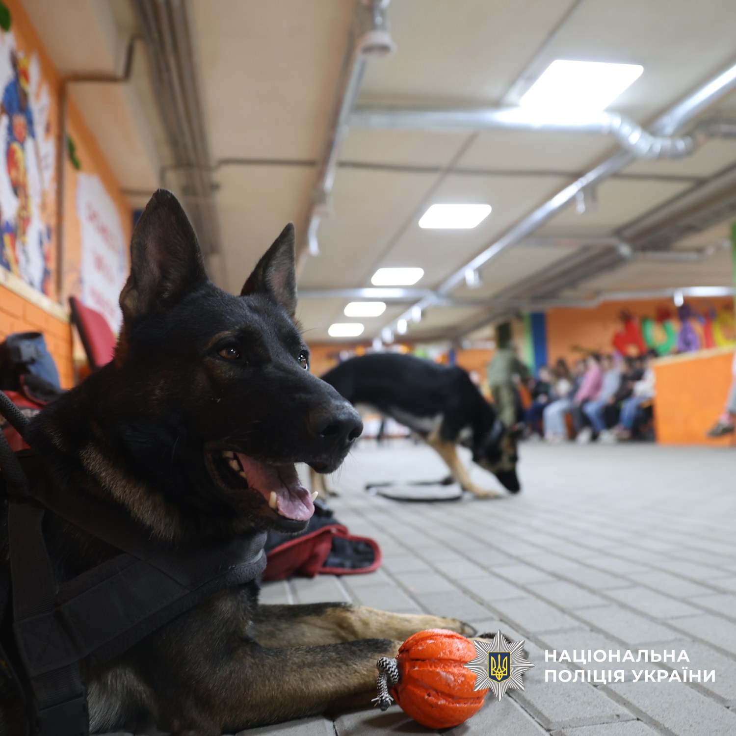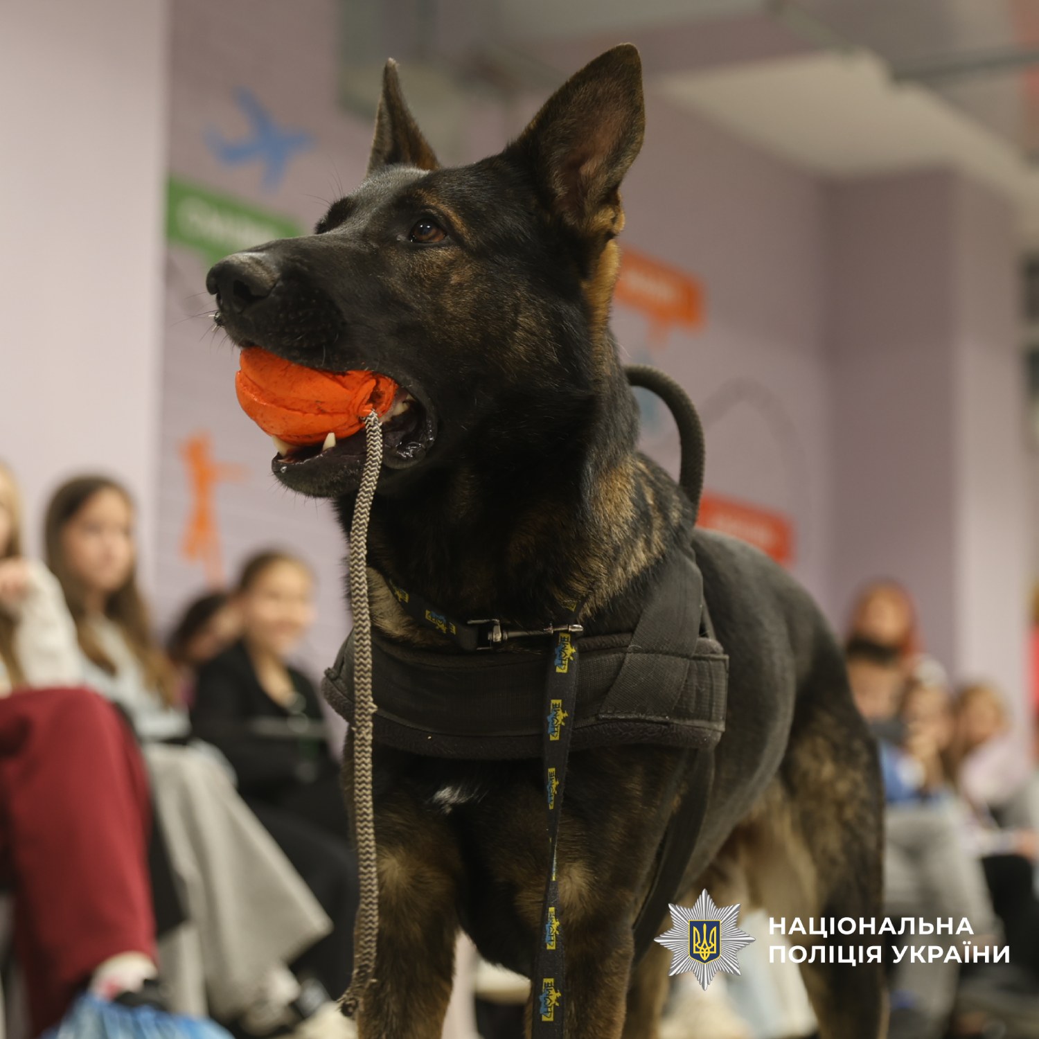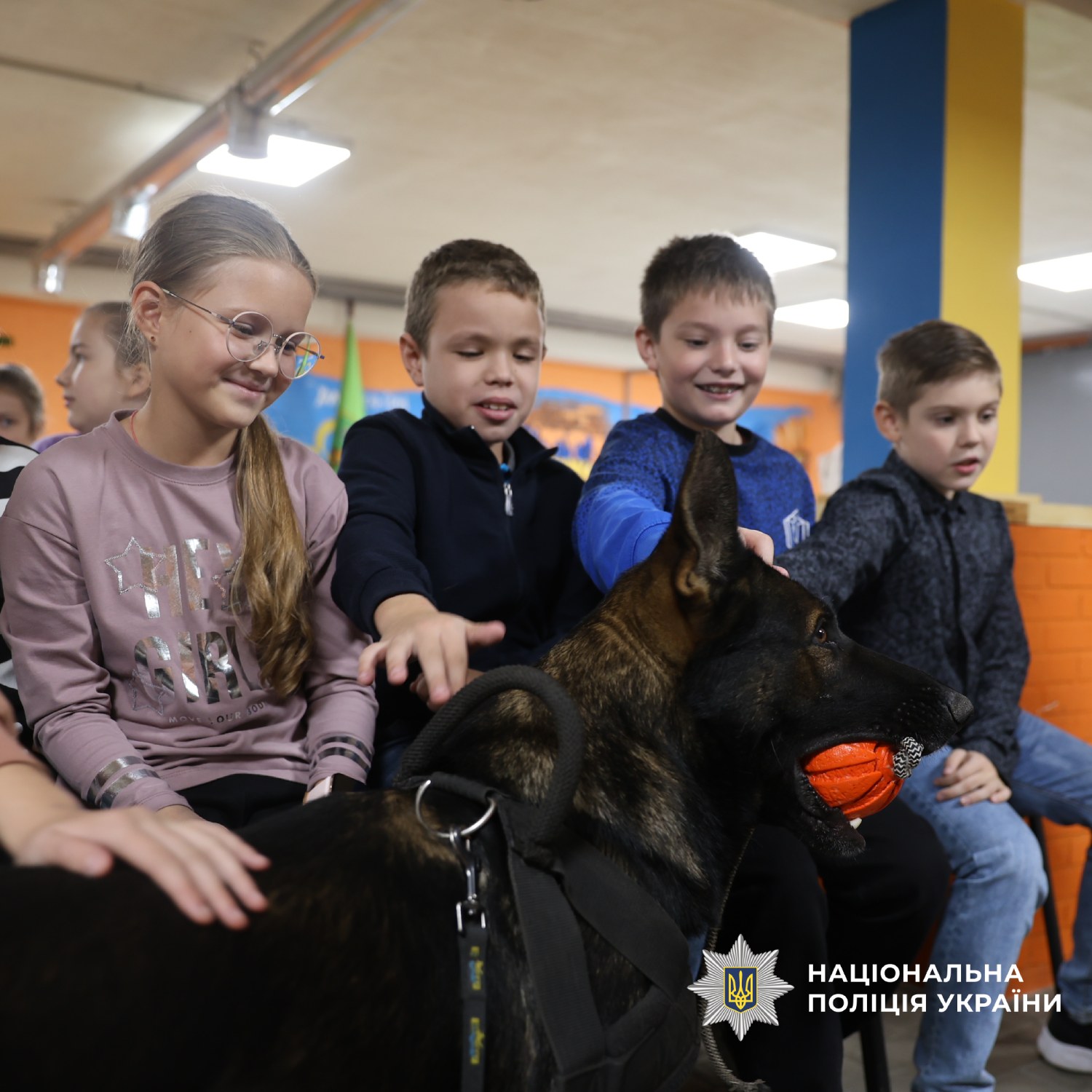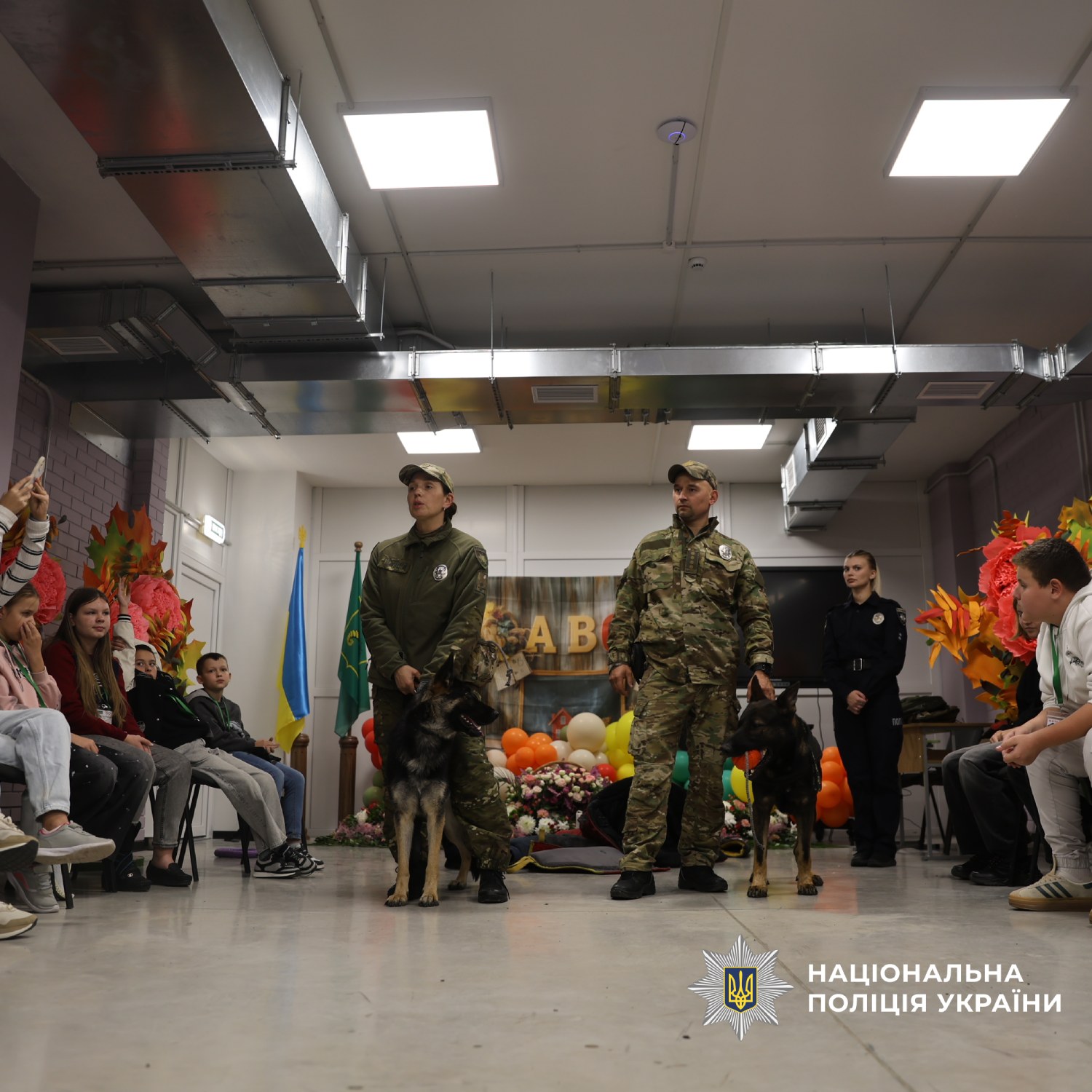 Під час заходу діти побачили показові виступи службових собак, які продемонстрували свої навички пошуку та слухняності. Малеча із захопленням спостерігала за чотирилапими, а після виступу мала змогу їх погладити та поспілкуватися з ними.