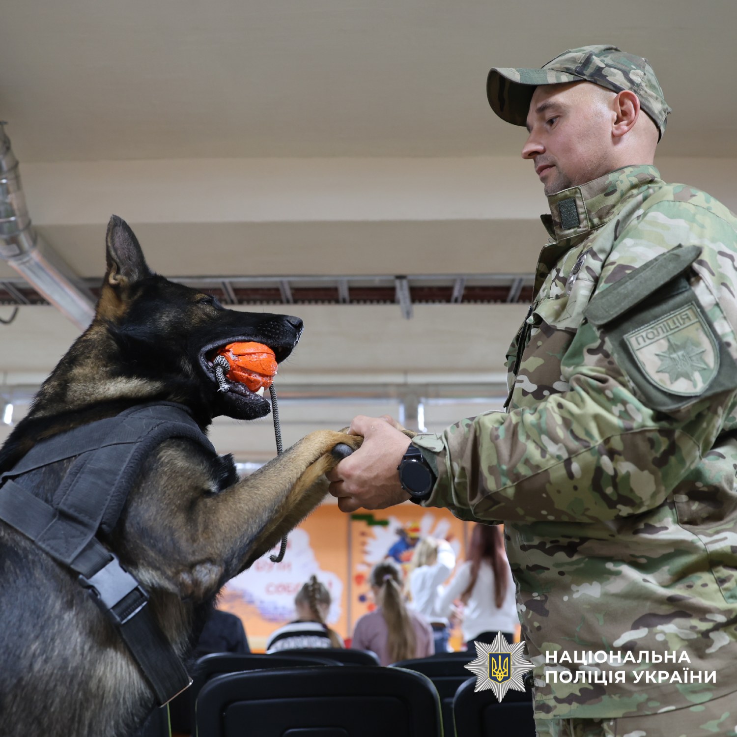 У Всесвітній день тварин поліцейські Харківщини познайомили дітей із чотирилапими помічниками