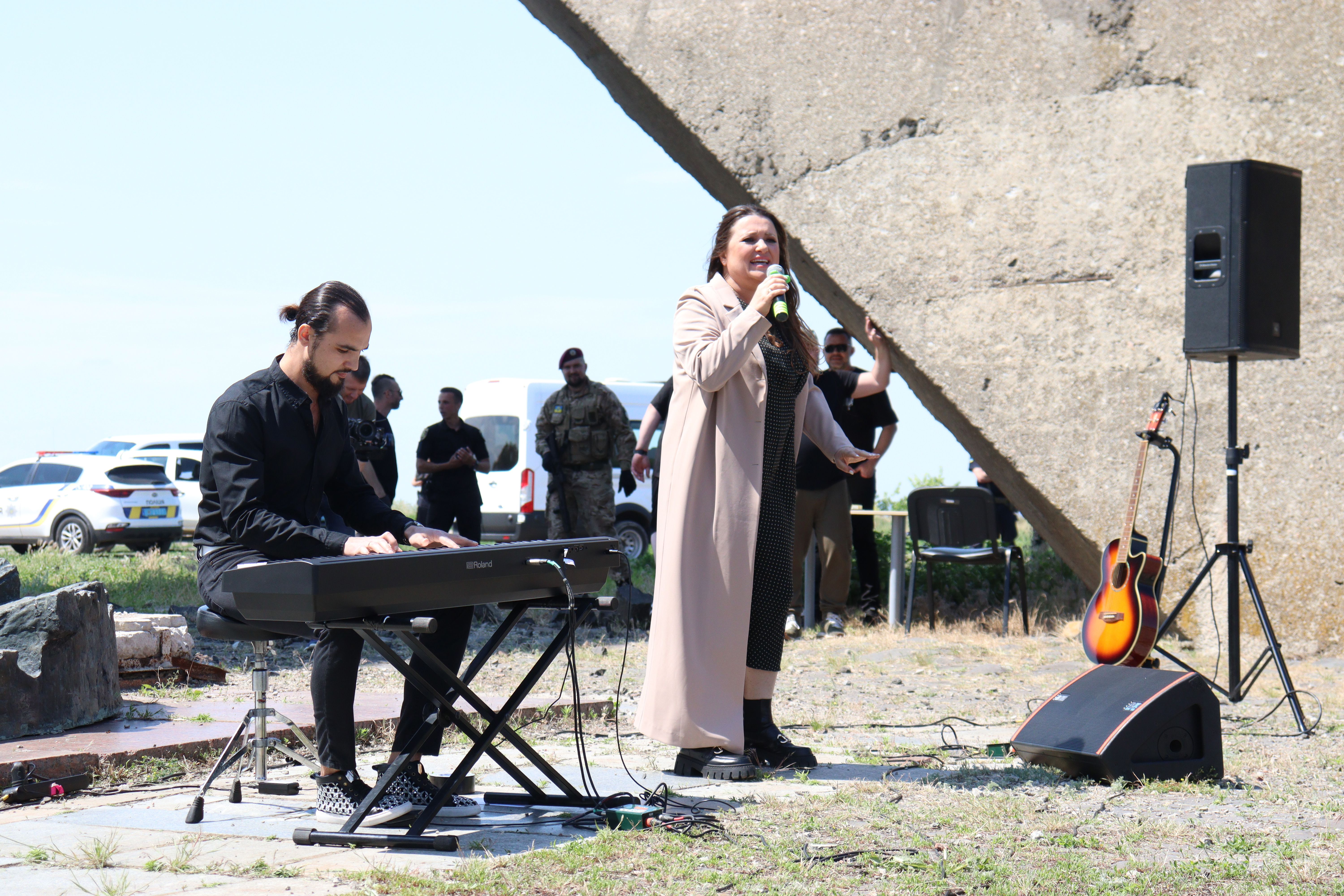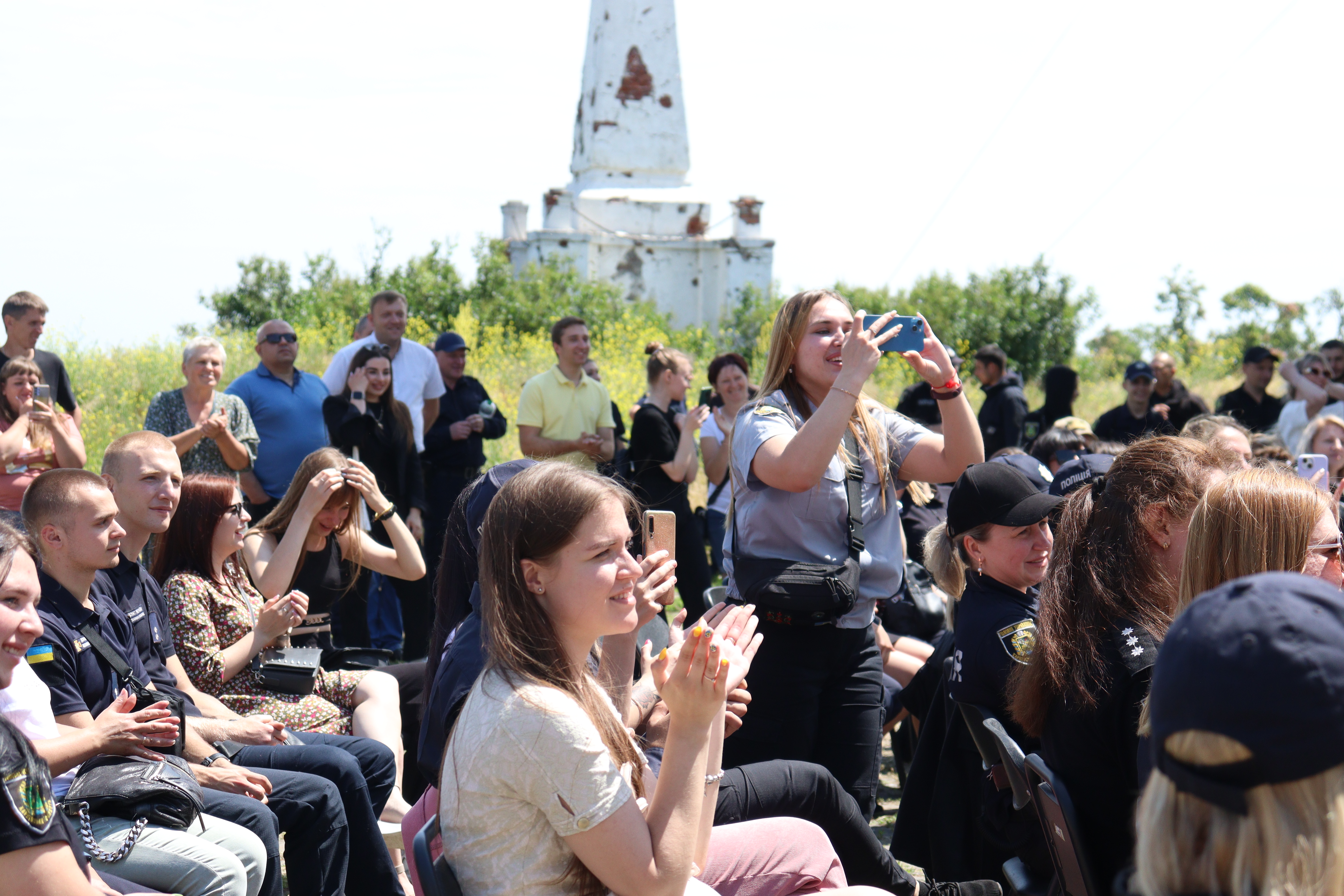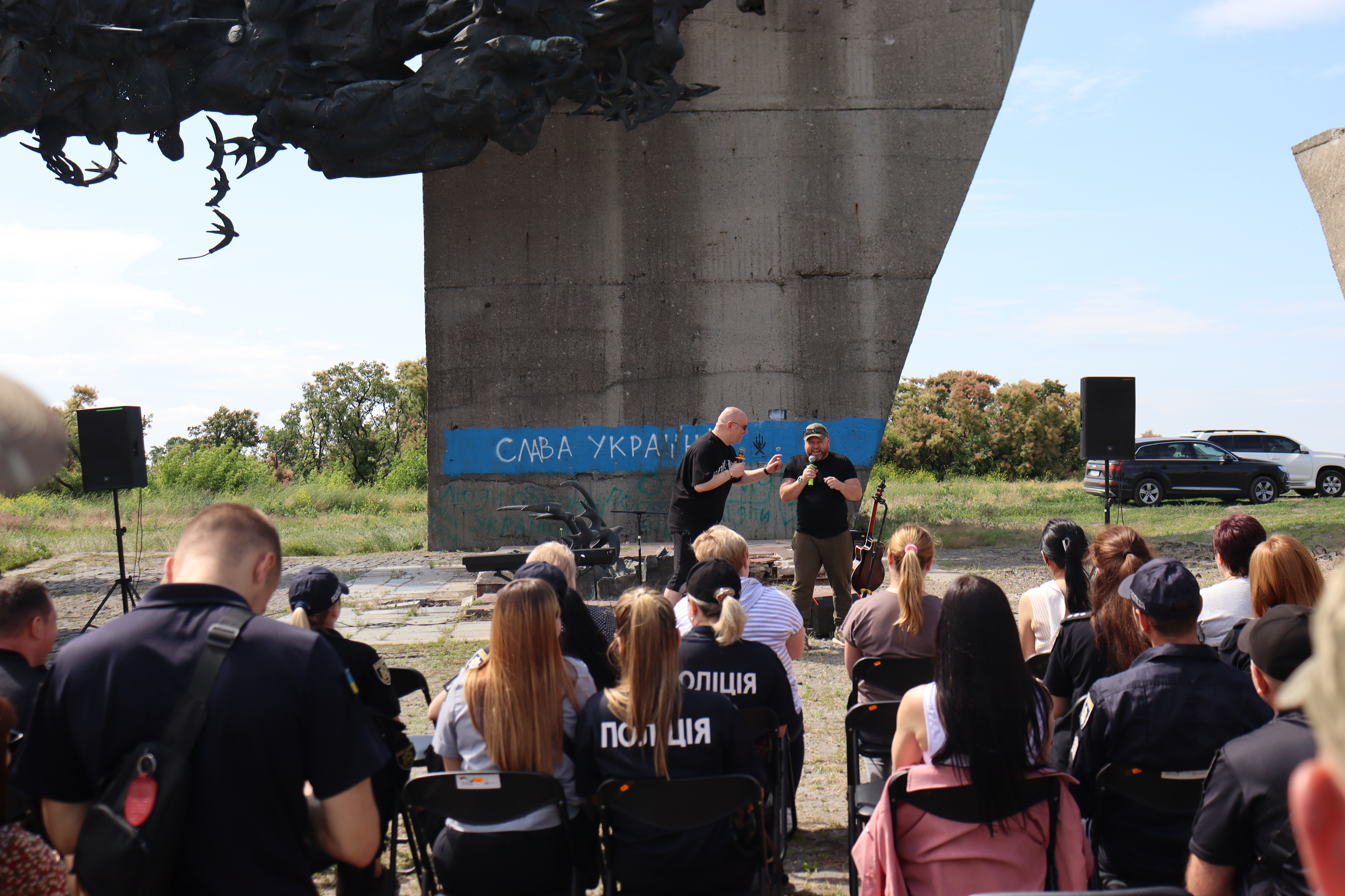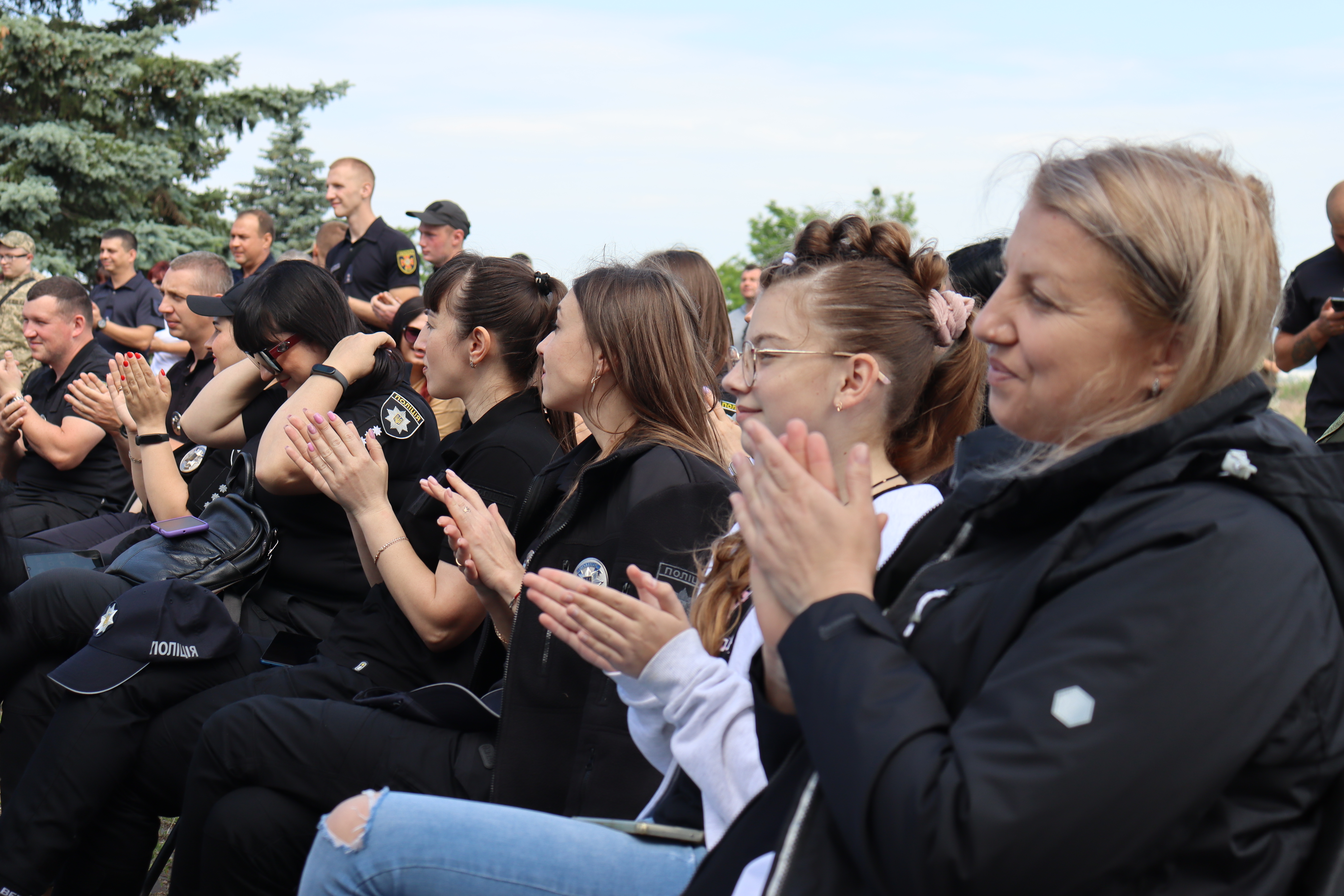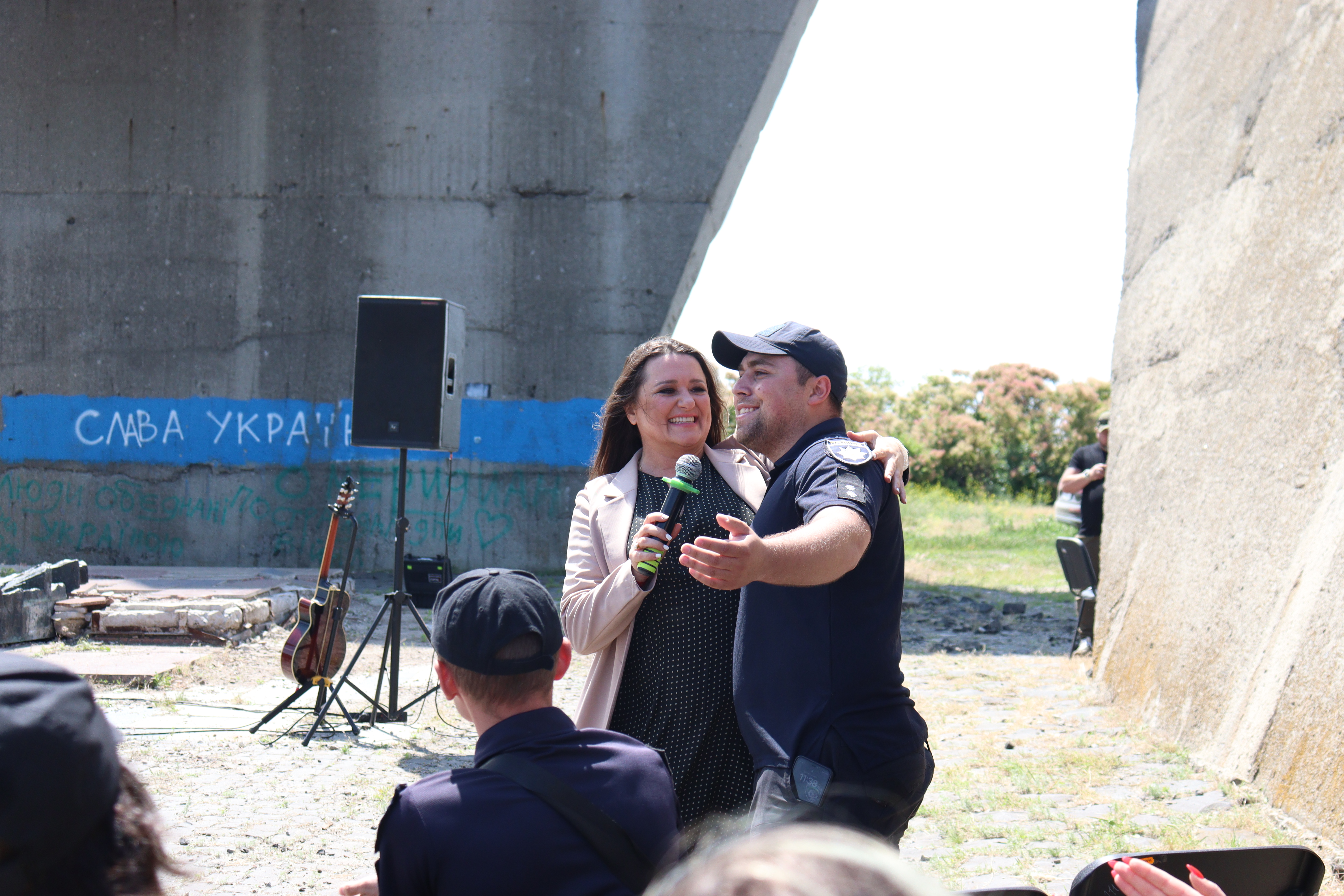 Поліцейські прийшли на концерт у свій вільний час. Цілодобово поліція виконує свої обов’язки на деокупованих територіях. Одразу після того, як наші славетні ЗСУ звільнили територію Харківщини, у вільні міста і селища зайшла поліція, щоб допомогти людям оговтатися від страхів окупації.