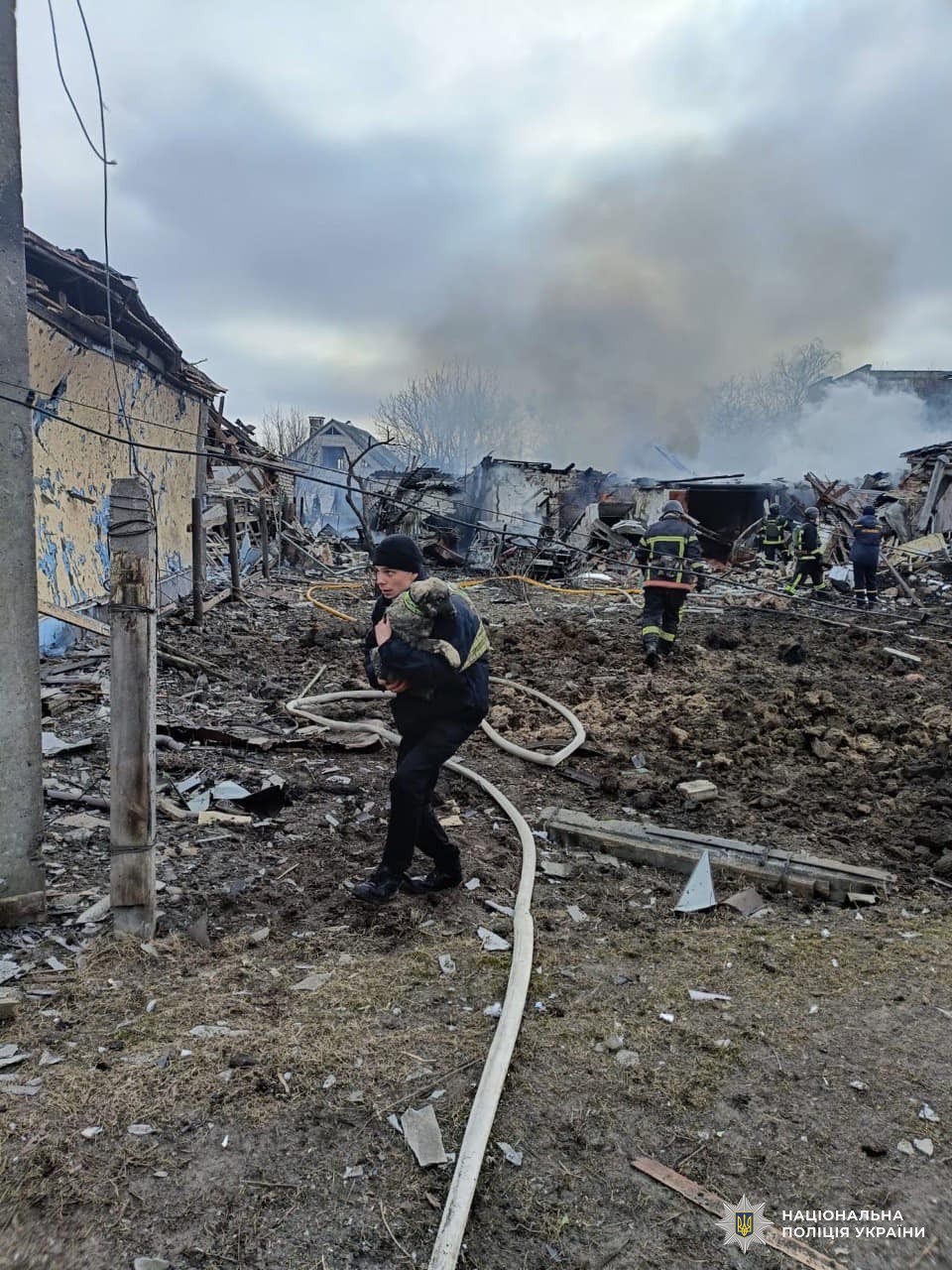О 01:00 село Мартове Чугуївського району військові росії атакували безпілотниками. Пошкоджено приміщення дитячого садка, ліцей, житлові будинки, магазин, перебита газова труба.