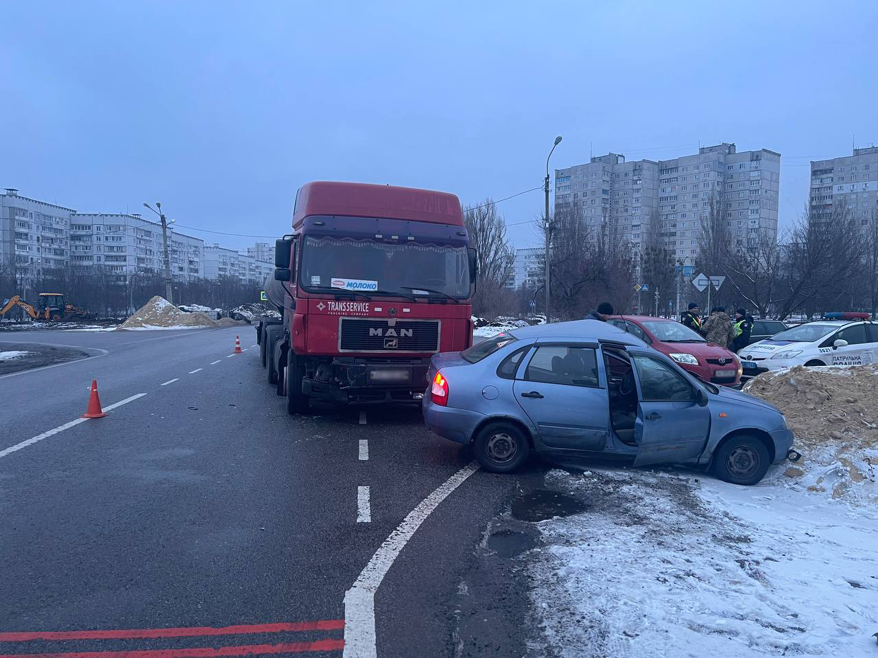 2 лютого близько 14:50 на перехресті вулиць Сергія Грицевця та Олександра Зубарєва автомобіль «ВАЗ 11183» при виїзді на кільцеву дорогу здійснив зіткнення з вантажівкою «MAN 19.403» з напівпричепом «HLS 200».