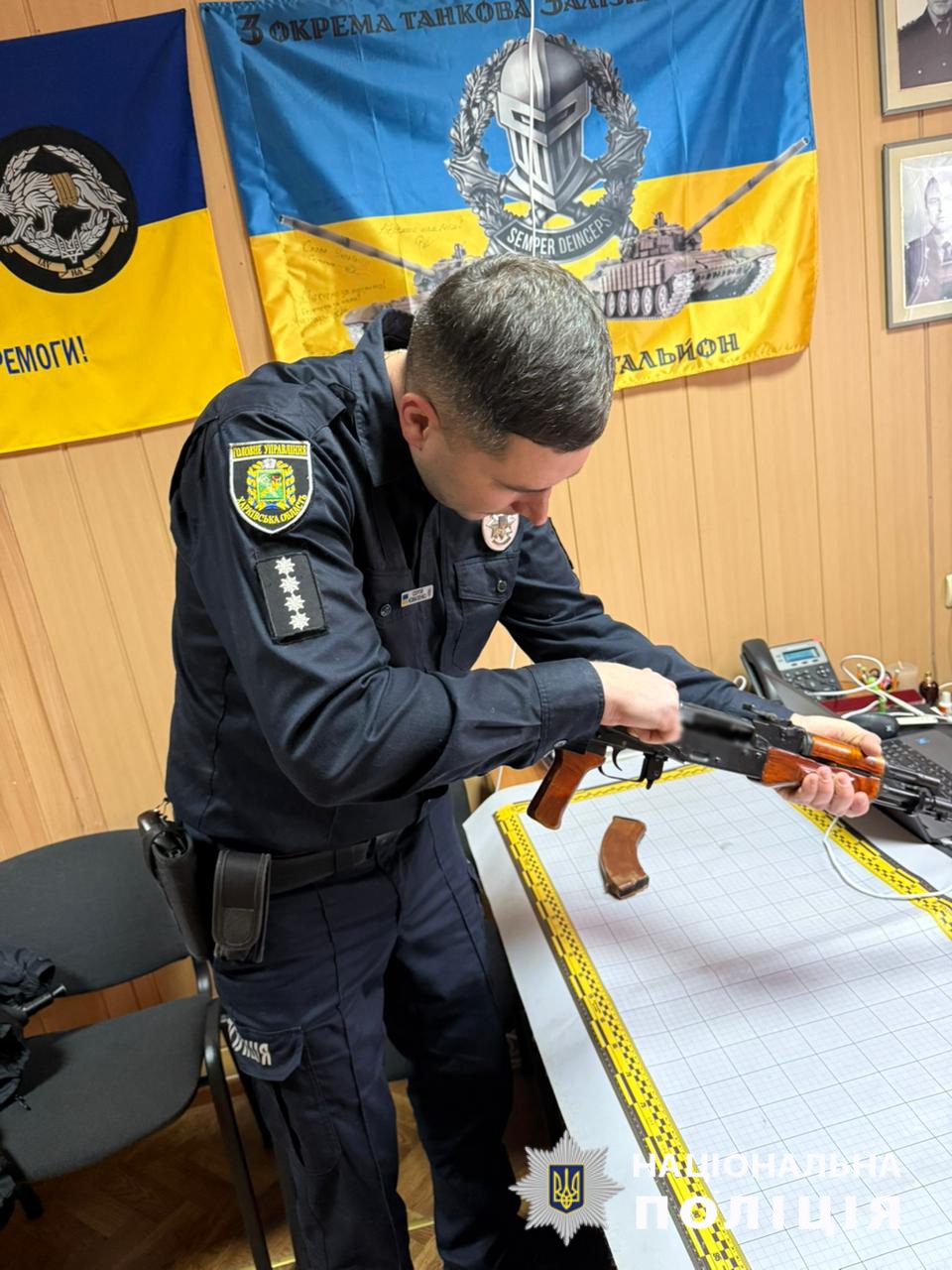 20 січня мешканець Новобаварського району Харкова повідомив на лінію «102» про знайдений у лісосмузі предмет, схожий на автомат АКМ та 150 набоїв. Чоловіка запросили до відділу поліції № 1 Харківського РУП № 3 ГУНП в Харківській області, де були надані роз'яснені щодо можливості декларування знайденої зброї.