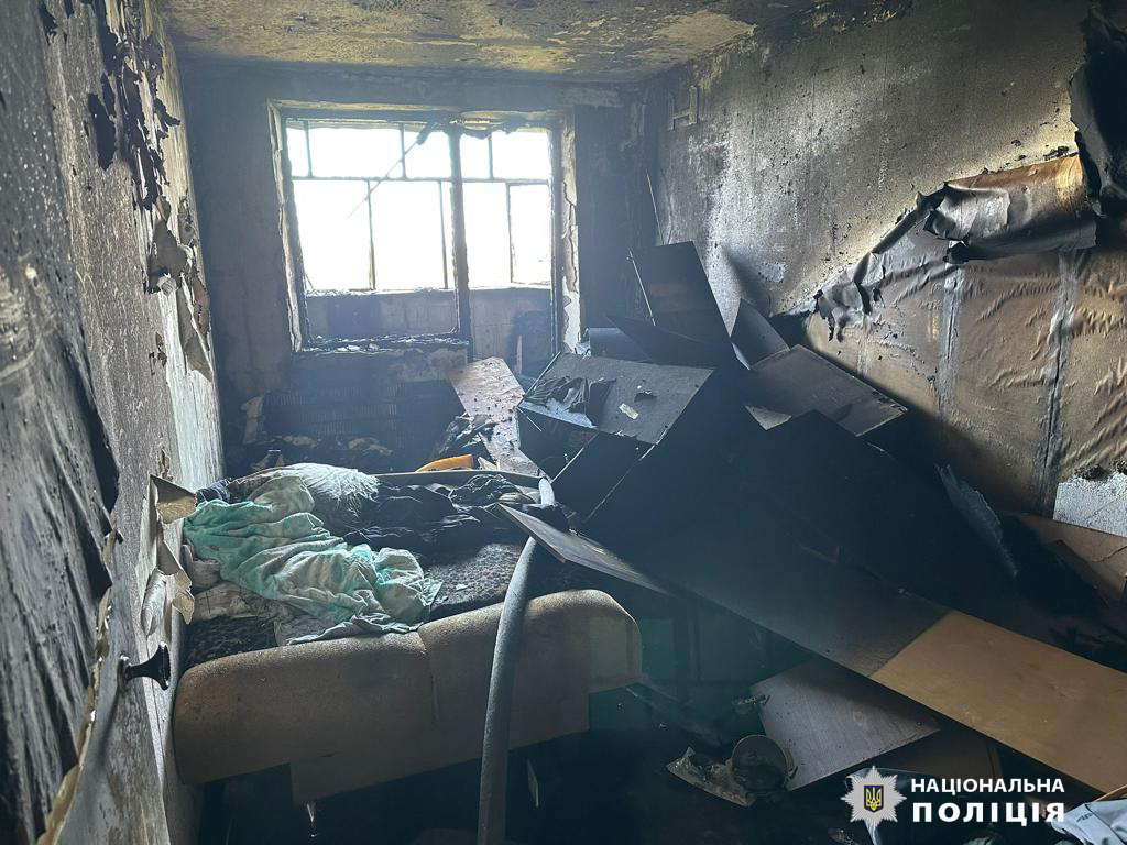 До поліції надійшло повідомлення про пожежу на 9-му поверху багатоквартирного будинку, яка сталася після вибуху.