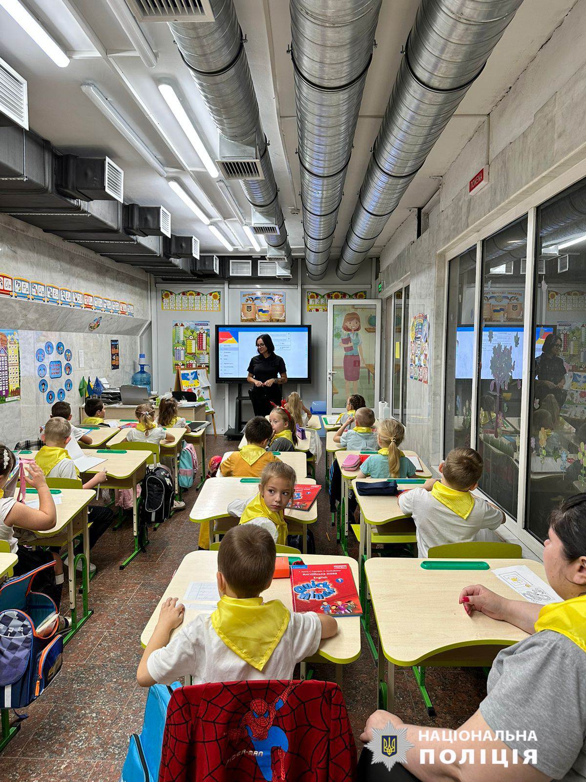 Поліцейські нагадали дітям про алгоритм дій під час повітряної тривоги та, як убезпечити себе в мережі Інтернет. Також ювенали розказали підліткам основні правила поведінки в соціальних мережах, щоб не потрапити на гачок до шахраїв.