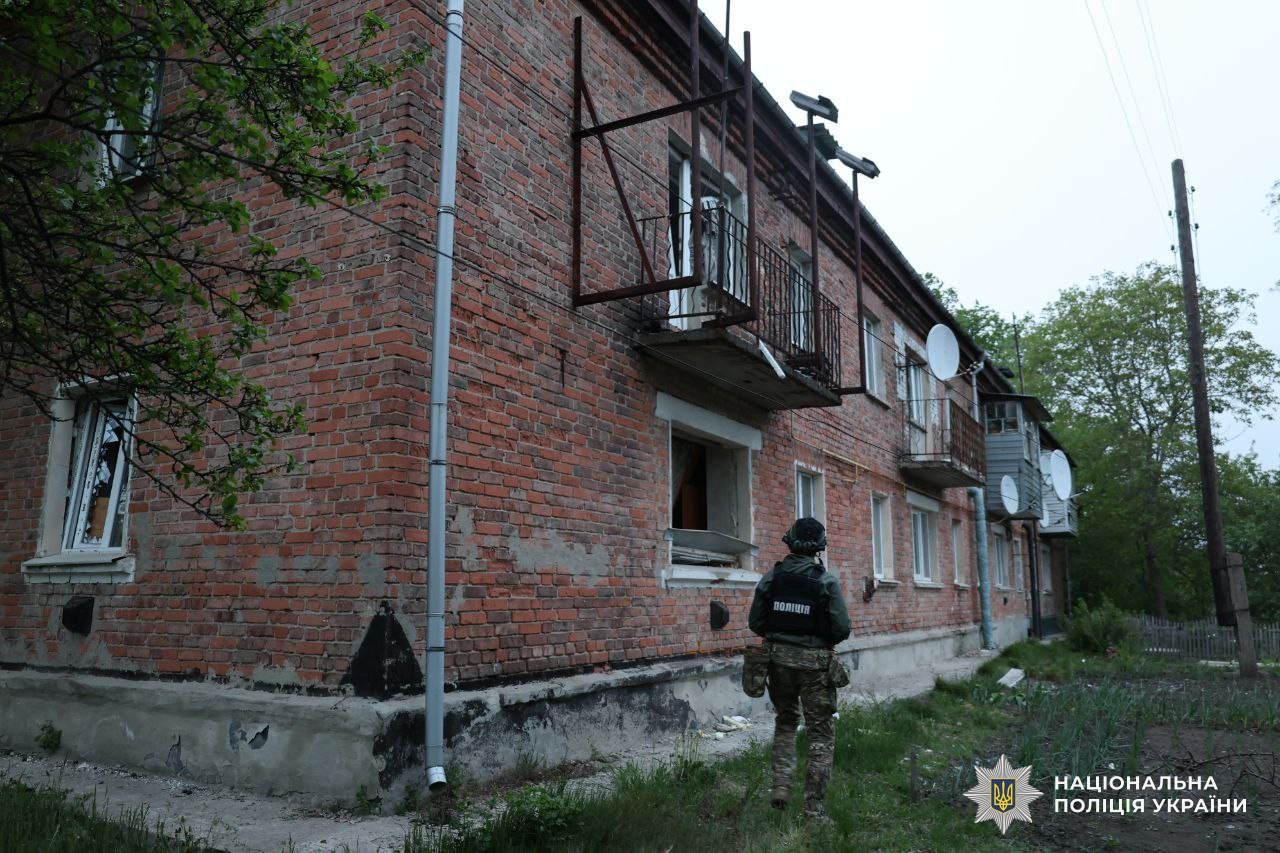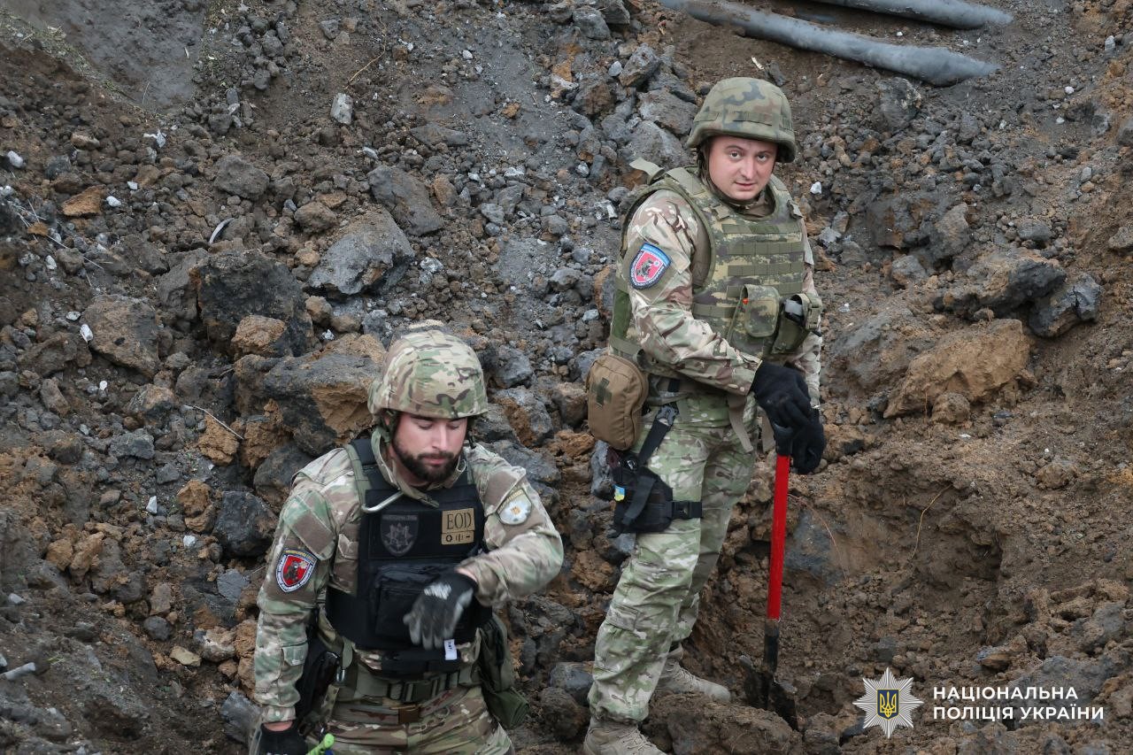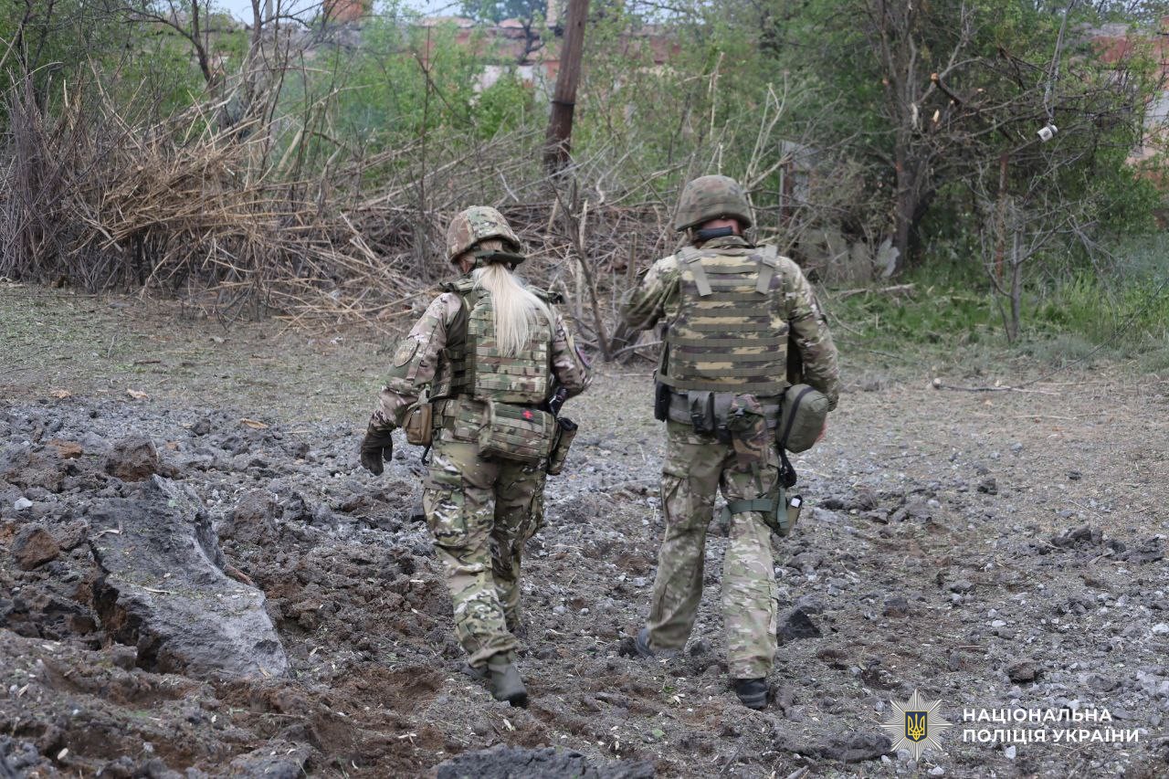 На місце події виїхала слідчо-оперативна група, криміналісти та вибухотехніки. Поліцейські проводять огляд місця події, опитують свідків, документують та вилучають речові докази злочину військовослужбовців російської армії.
