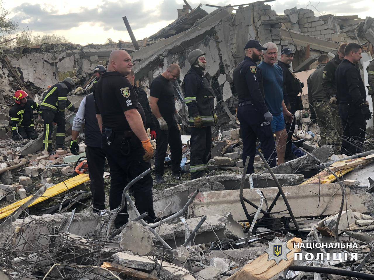 На місце трагедії оперативно прибули поліція, рятувальники, медики. Вони розчищають завали, рятують поранених. Працівники слідчо-оперативної групи проводять огляд місця події та документують наслідки.