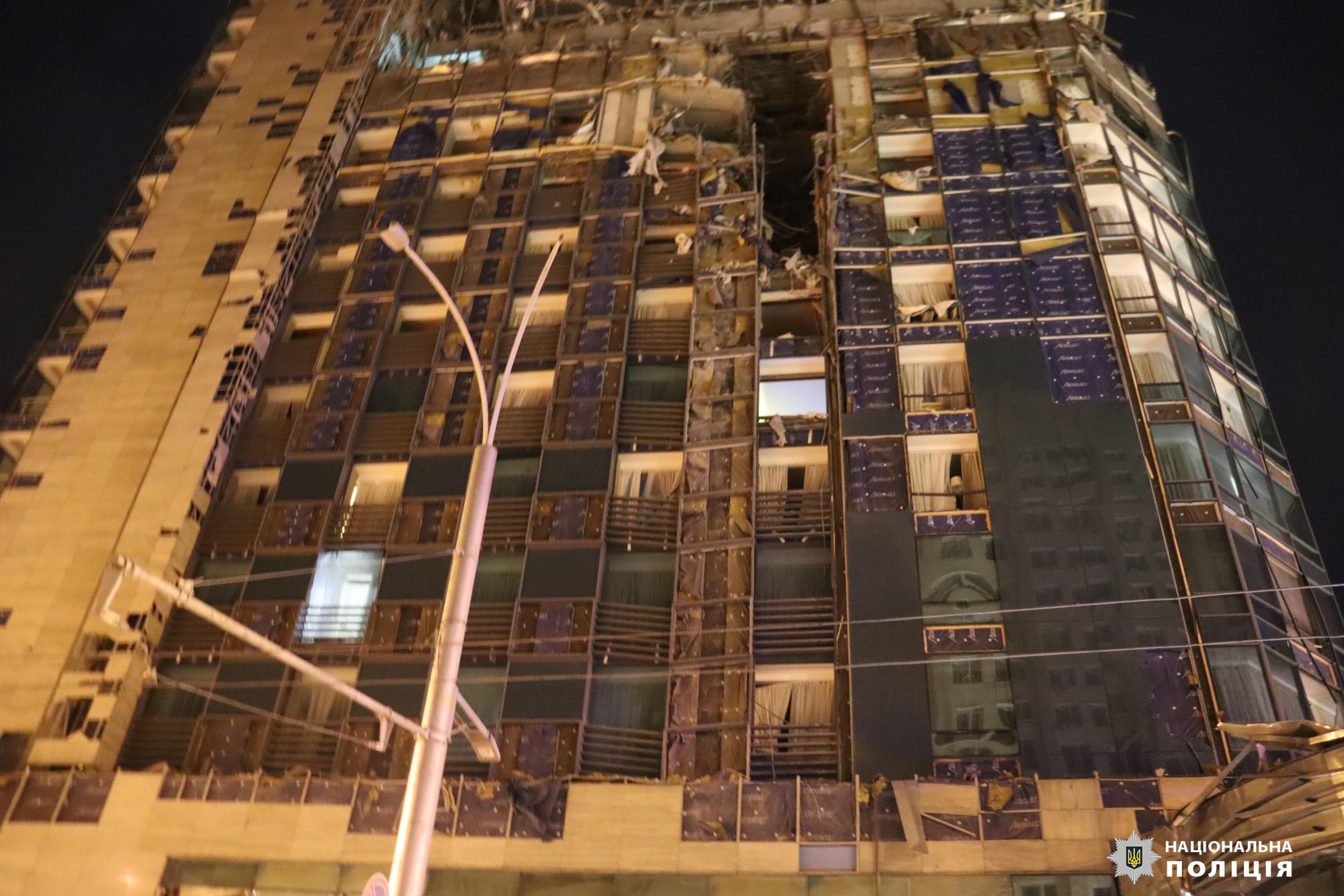 В результаті ракетних ударів пошкоджені 12 багатоквартирних будинків, 13 приватних будинків, лікарні, будівля готелю, дитячий садок, торговельні приміщення, газопровод та автомобілі.