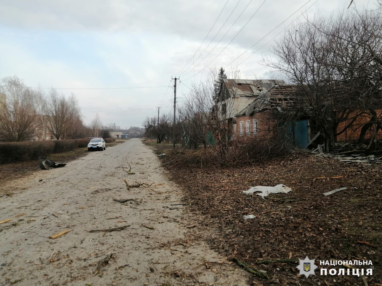Близько 16:15 військові рф завдали ударів ФАБ-500 по місту Дергачі. Поранення отримали чотири жінки віком від 56 до 68 років. Пошкоджені та зруйновані житлові будинки.