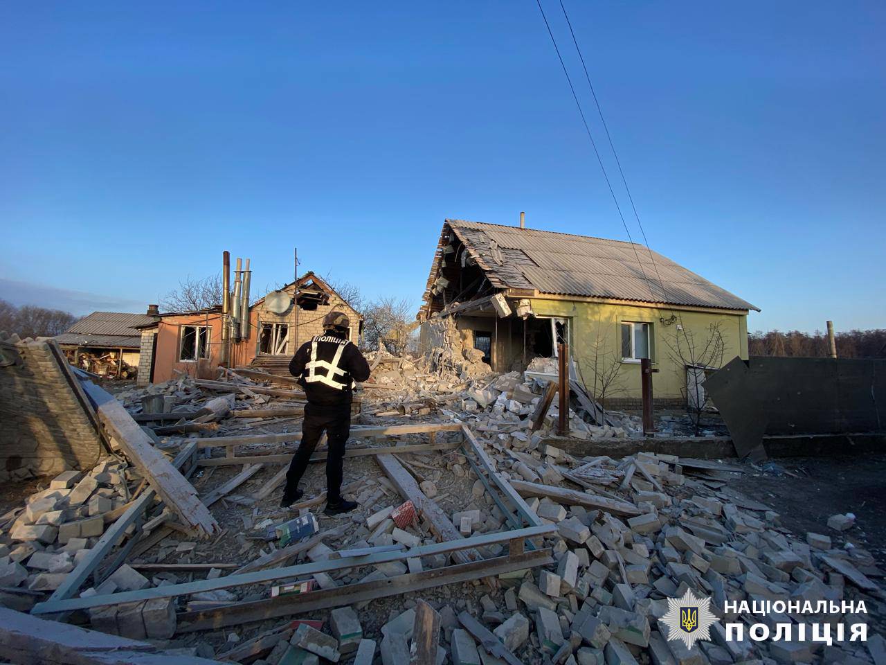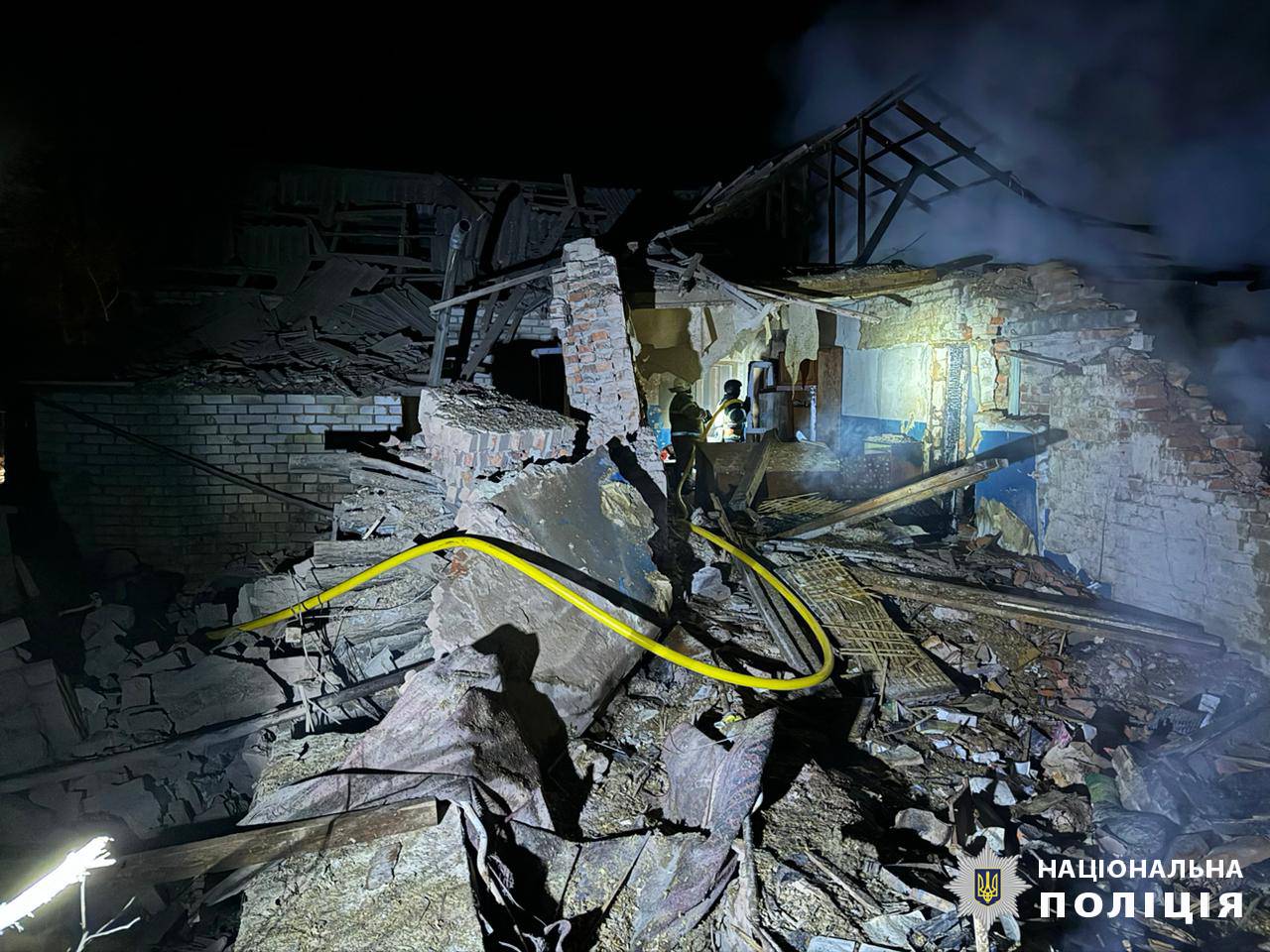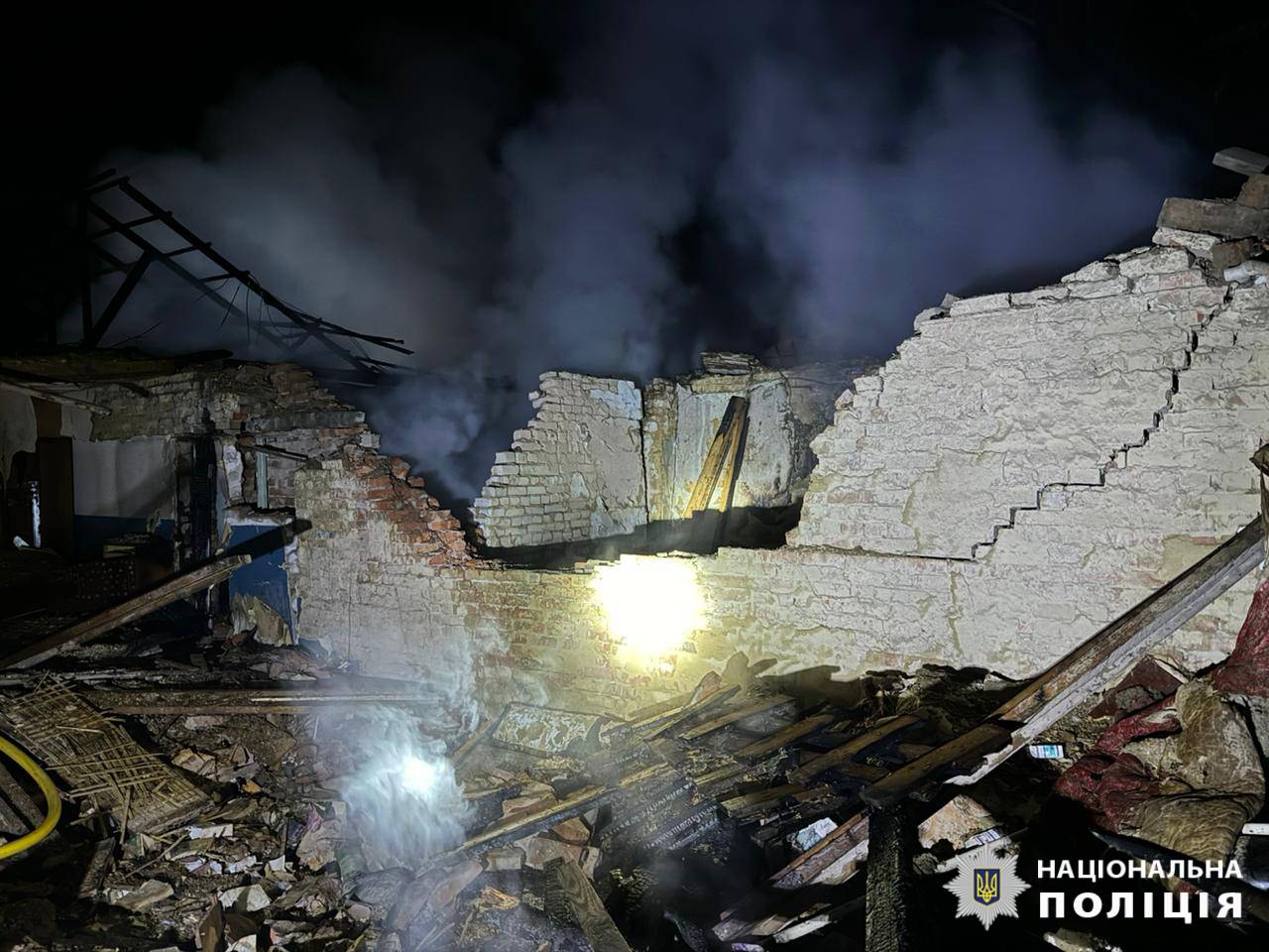 БПЛА «Шахед» влучив у приватне домоволодіння в селищі Великий Бурлук. Пошкоджено будинок. З-під завалів дістали тіло 76-річного чоловіка. З сусіднього домоволодіння поліцейські евакуювали літню жінку.