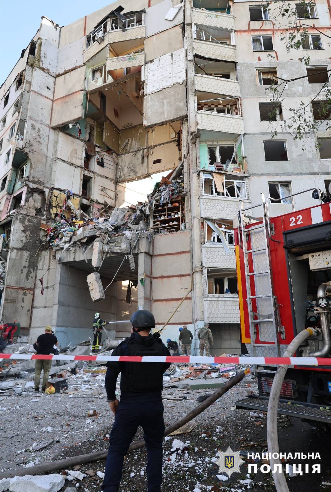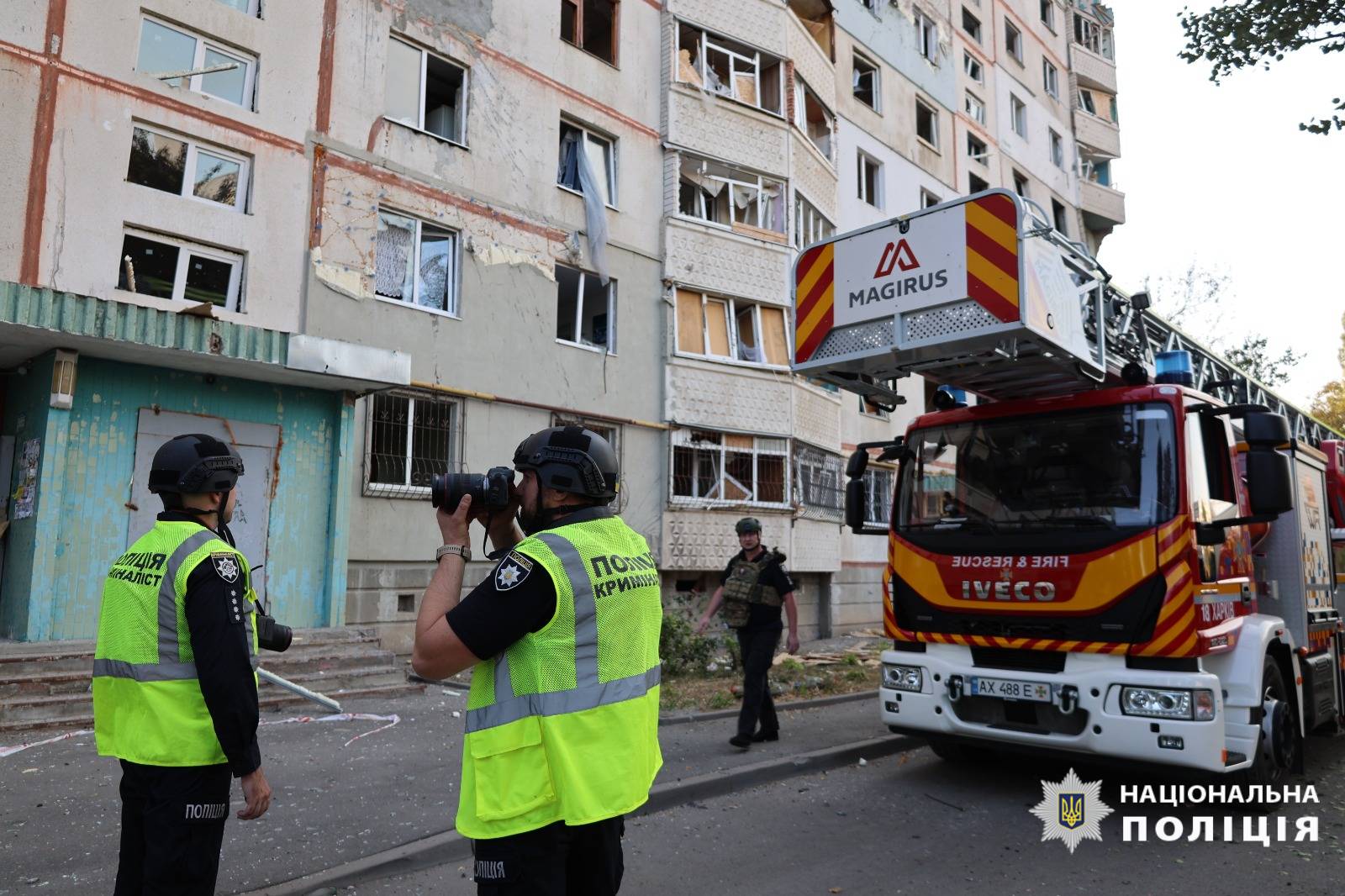 24 вересня з 15:20 до 15:45 росіяни з авіації здійснили запуски восьми авіабомб по Харківщині. Одна з ракет «ФАБ-500» влучила у дев’ятиповерховий будинок у Київському районі. Зруйновані п’ять поверхів. Під завалами опинилися мешканці будинку. Постраждали 24 громадяна, у тому числі 17-річна дівчина отримала гостру реакцію на стрес. Одна мешканка будинку померла у лікарні.