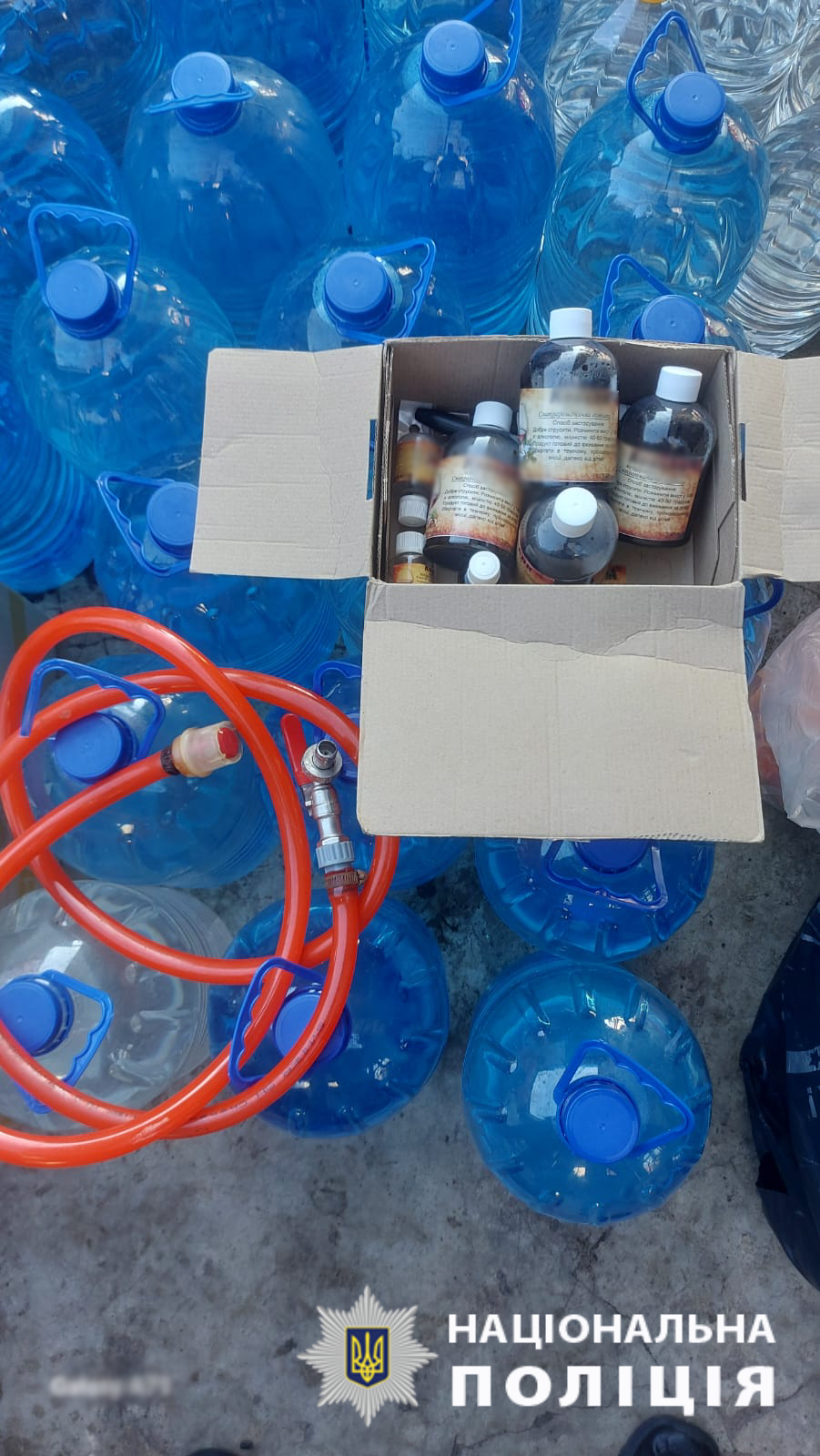 Поліцейські провели шість санкціонованих обшуків за місцями незаконного збуту товару. В результаті вилучено понад 10 800 пачок тютюнових виробів, більш ніж 1600 літрів речовини з характерним запахом спирту, обладнання для виробництва алкогольних напоїв, пів сотні упаковок лікеро-горілчаних виробів невідомого походження типу «bag-in-box» відомих торгових марок по три літри кожна, чорнові записи, мобільні телефони, гроші.