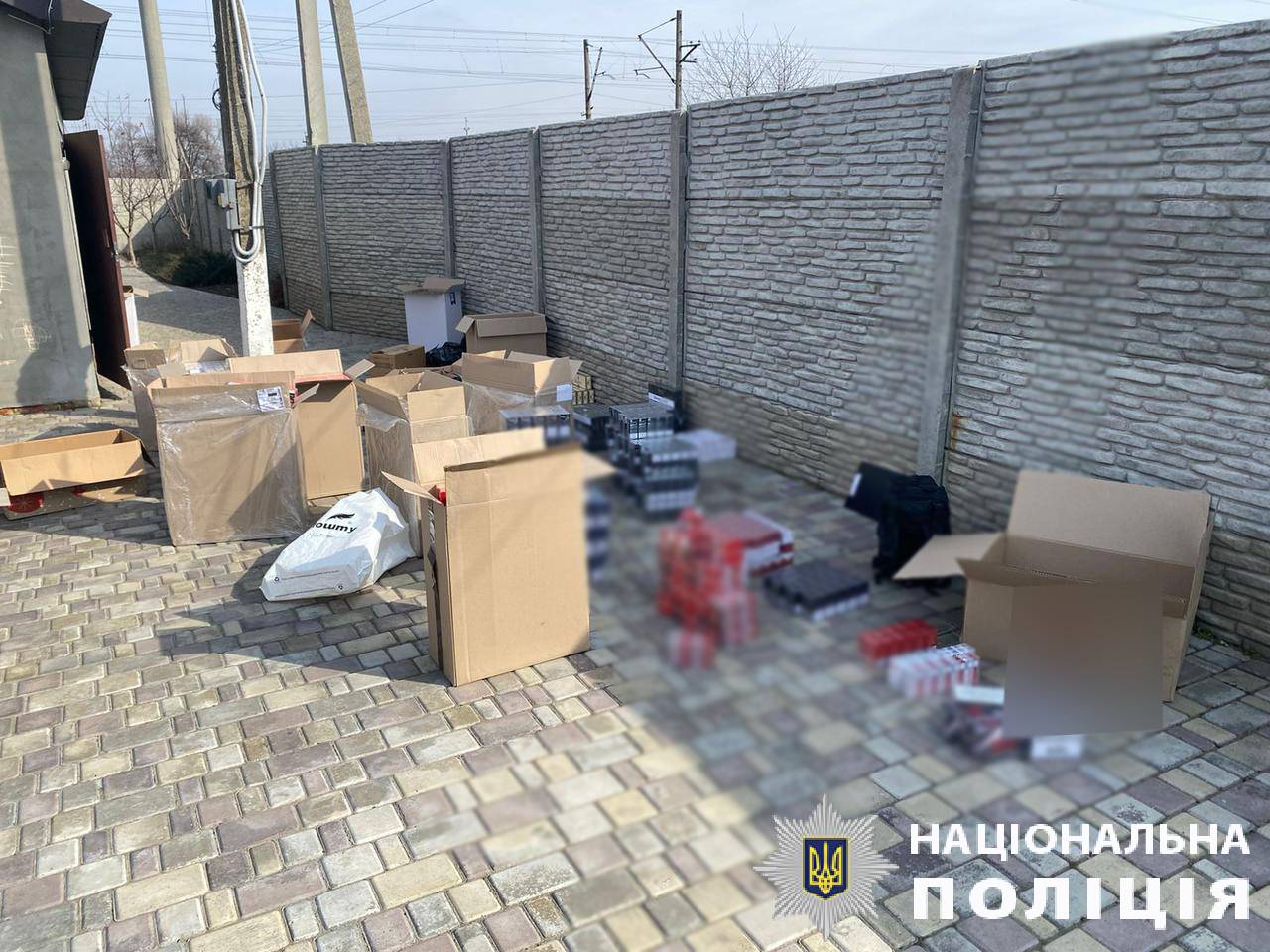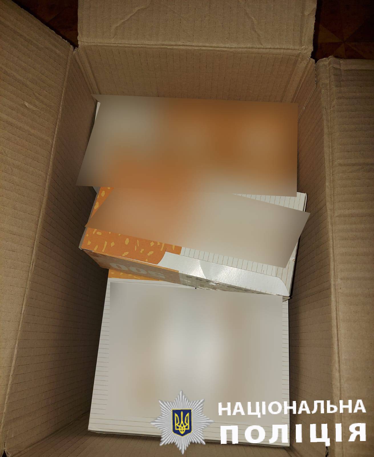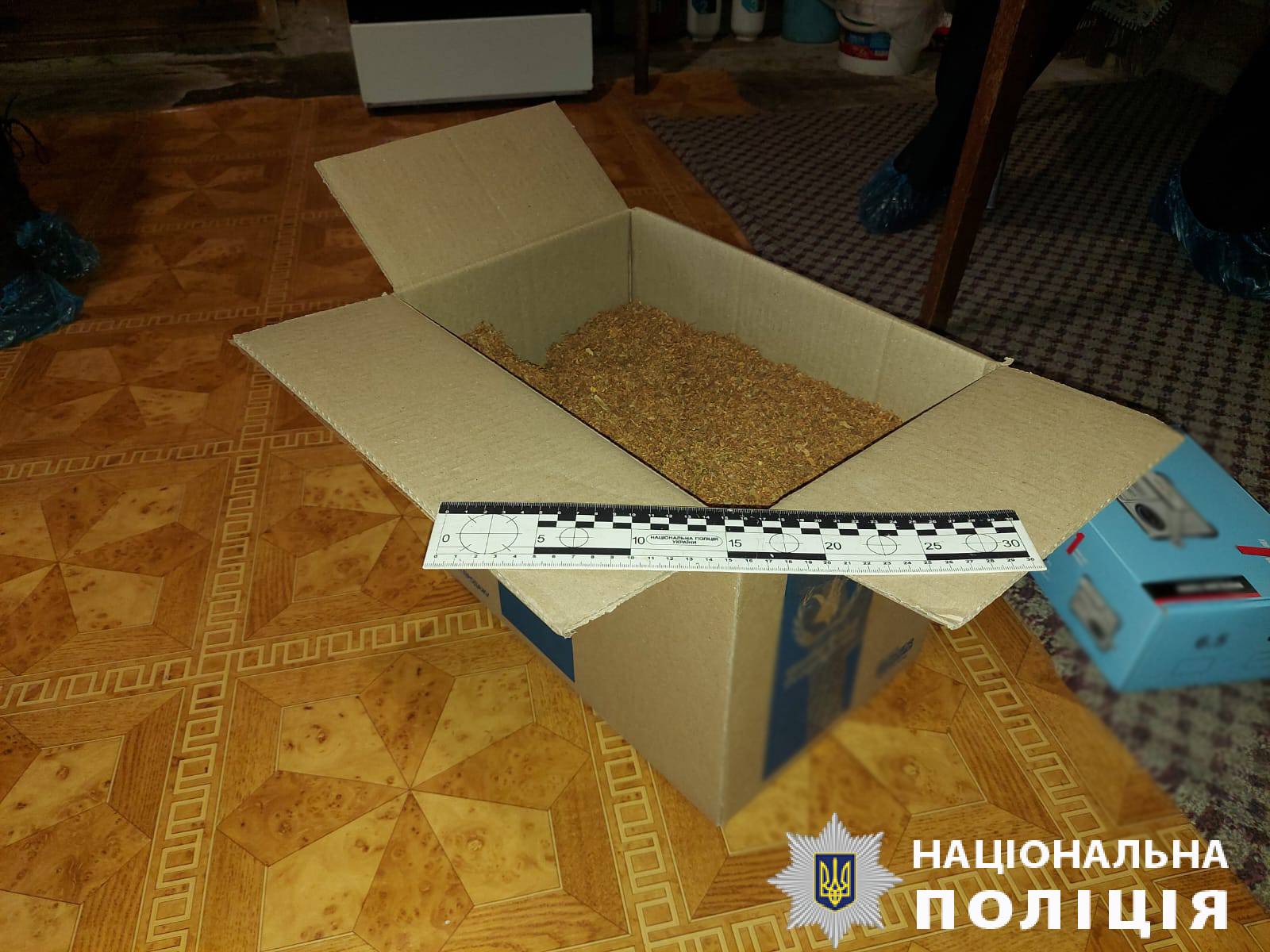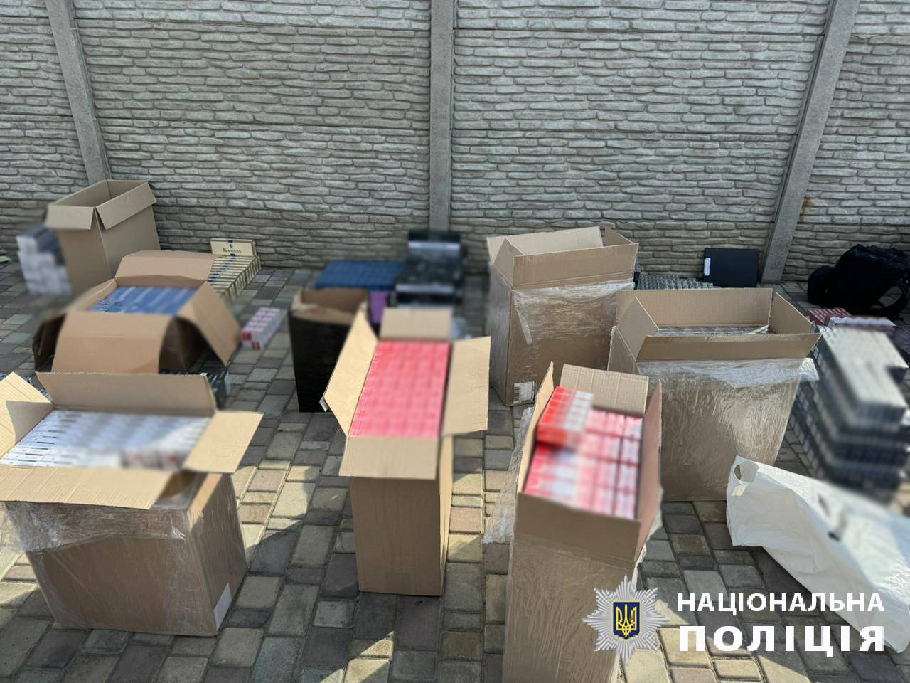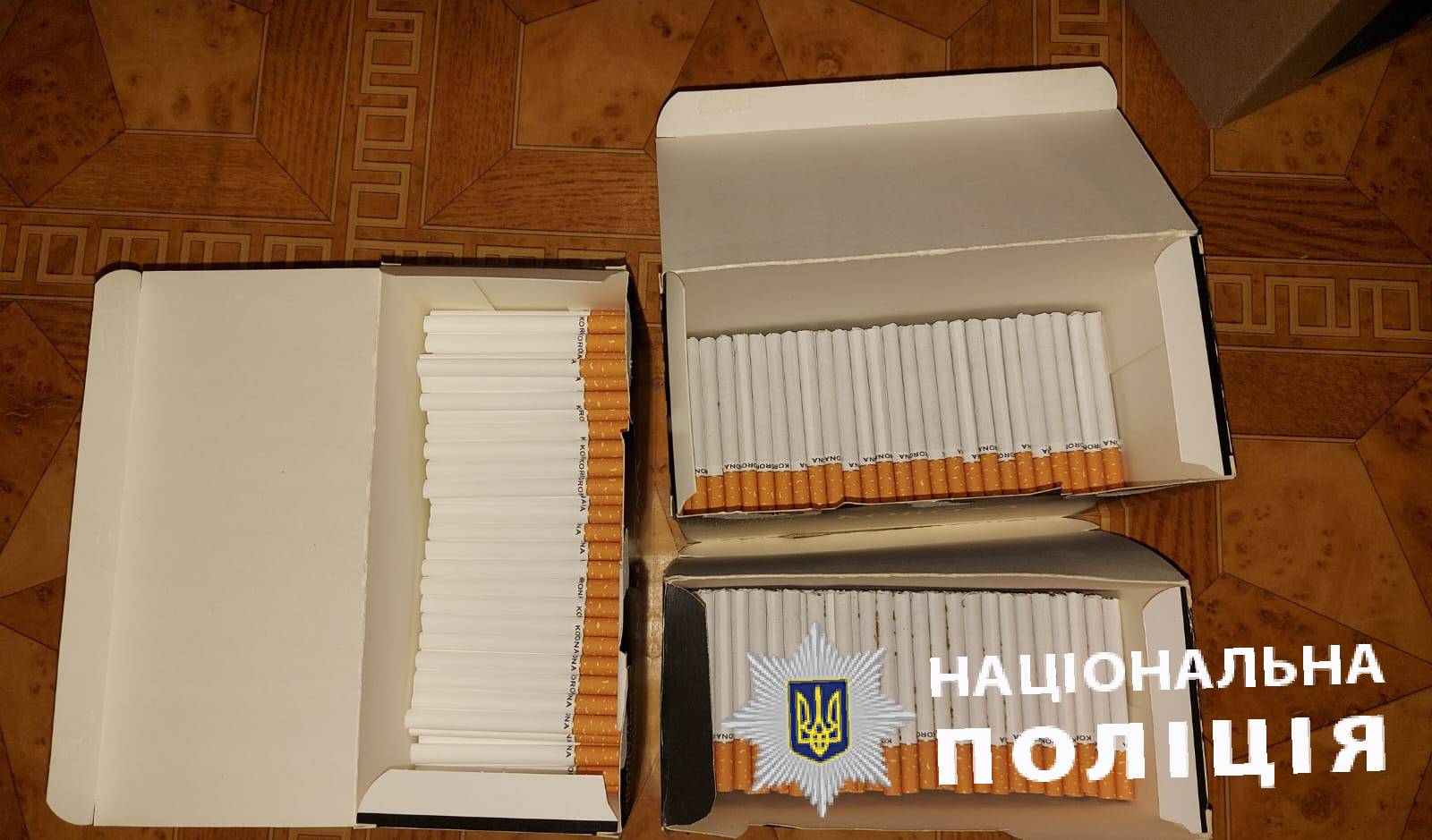 Поліцейські вилучили понад вісім тисяч пачок цигарок іноземних марок, у тому числі невизначеного походження, а також чорнові записи, приладдя для виготовлення цигарок, гільзи для фасування та коробки з розсипним тютюном.