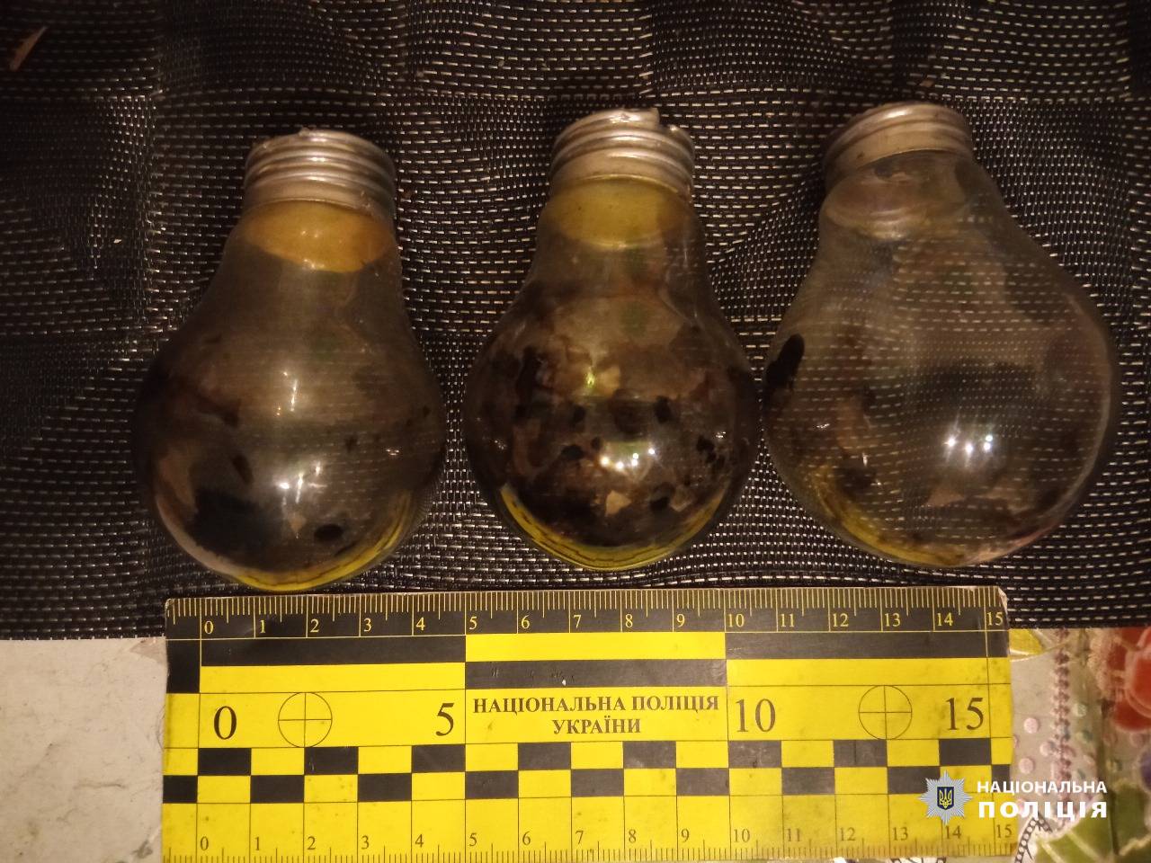 Під час проведення санкціонованого обшуку у порушника виявили паперові згортки з сухою подрібненою речовиною рослинного походження, за зовнішніми ознаками схожу на канабіс, а також зіп-пакет з порошкоподібною кристалічною речовиною білого кольору, схожою на солі «PVP» та п’ять саморобних пристроїв для вживання наркотичних засобів.