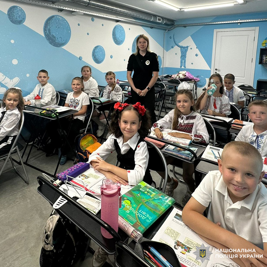 Поліцейські нагадали дітям алгоритм дій під час повітряної тривоги, правила безпечної поведінки у навчальному закладі та на вулиці. Також школярів навчили, як діяти при виявленні підозрілих або вибухонебезпечних предметів, нагадали контакти екстрених служб, куди слід повідомляти про такі знахідки.