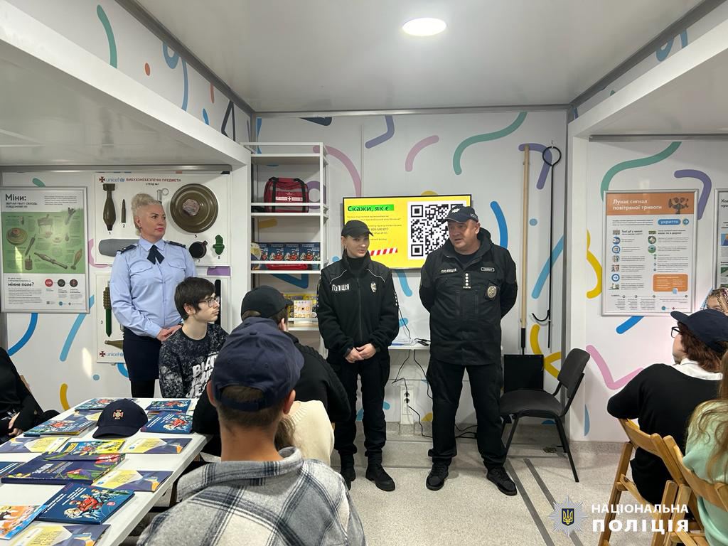 Ювенальні поліцейські Харкова провели пізнавальний урок з дітьми у «Мобільному класі безпеки»