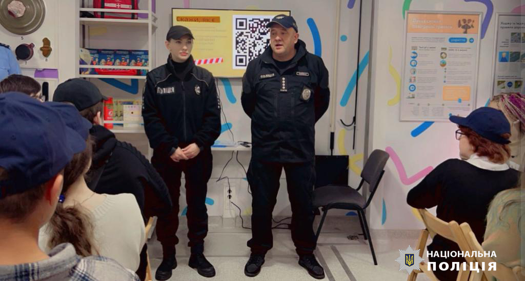 У приміщені пересувного класу безпеки правоохоронці нагадали дітям заходи особистої безпеки, розповіли правила поведінки, а також про безумовне дотримання правил дорожнього руху, особливо у темний час доби, та використання світловідбивальних стрічок або наліпок.