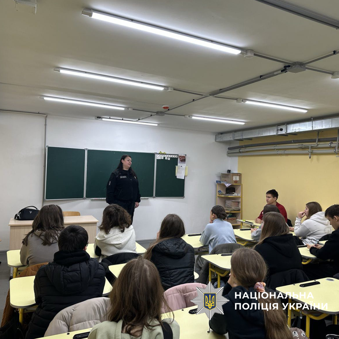 Під час зустрічей інспектор ювенальної превенції Вікторія Демченко розповіла школярам про основні правила кібербезпеки, небезпеку спілкування з незнайомцями в мережі, наслідки поширення неправдивої чи принизливої інформації про інших користувачів, а також про відповідальність за вчинення булінгу та інші правопорушення.
