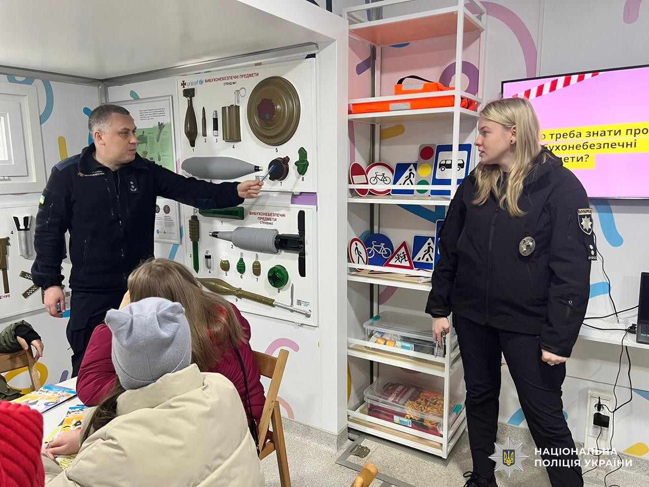 За допомогою медіа обладнання й макетів правоохоронці познайомили школярів з видами вибухонебезпечних предметів та розповіли про правила безпеки при їх виявленні. Для кращого засвоєння матеріалу дітям роздали безпекову тематичну продукцію.