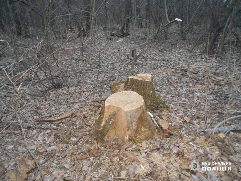 Під час досудового розслідування слідчі відділу поліції № 3 ХРУП № 1 спільно з працівниками Харківської окружної прокуратури в Харківській області з’ясували, що 26 березня минулого року 27-річний мешканець села Буди Харківського району приїхав на автомобілі з групою осіб до захисної лісосмуги на території Васищевського лісництва. Впевнившись, що за ними ніхто не спостерігає, зловмисники за допомогою бензопили зрізали 28 сироростучих та 41 сухостійне дерево.