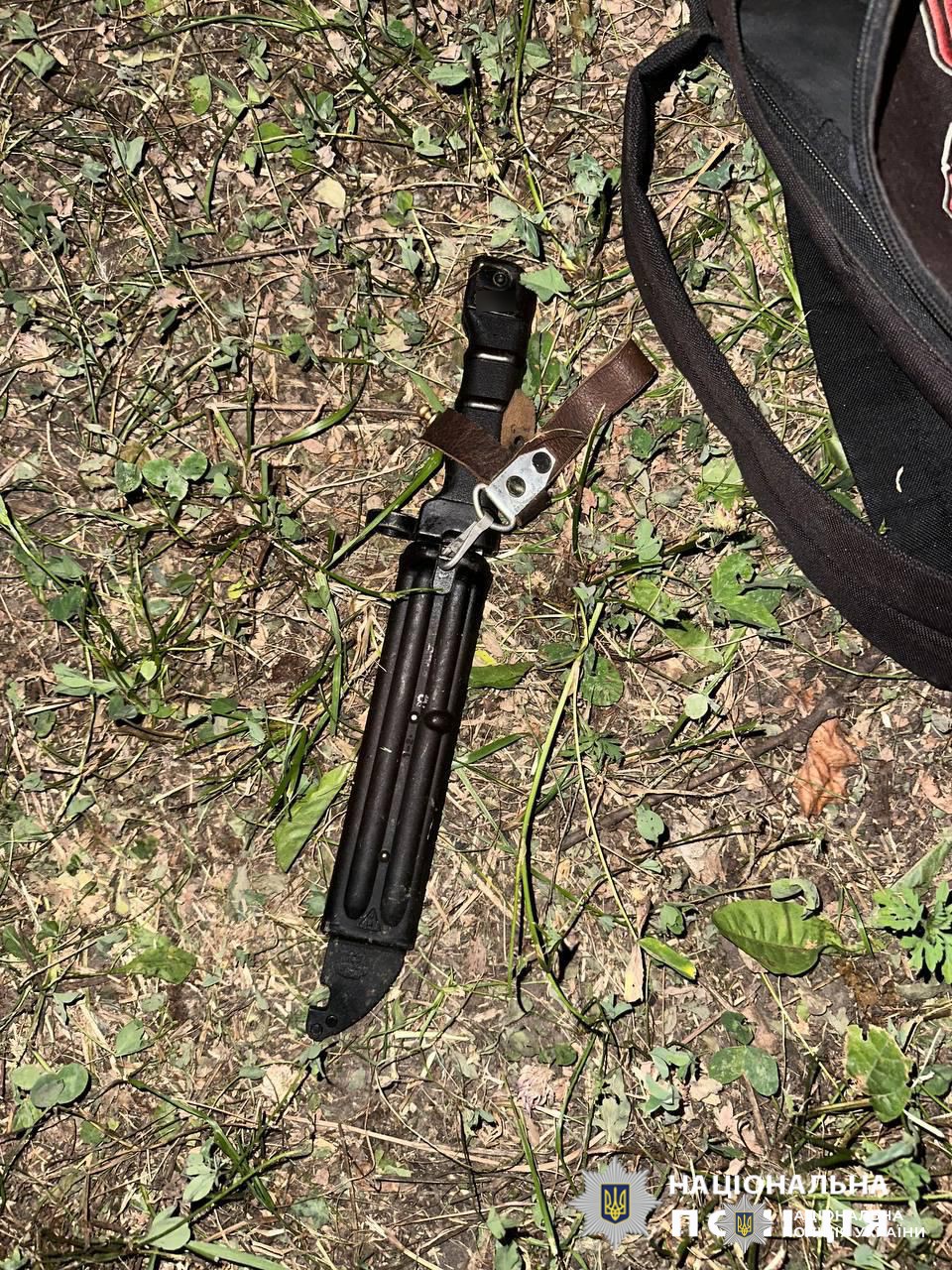 На місце події прибула слідчо-оперативна група. 37-річний чоловік видав поліцейським холодну зброю - військовий багнет-ніж до автомату АК-47.